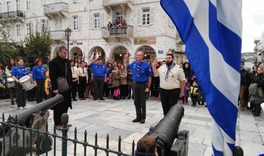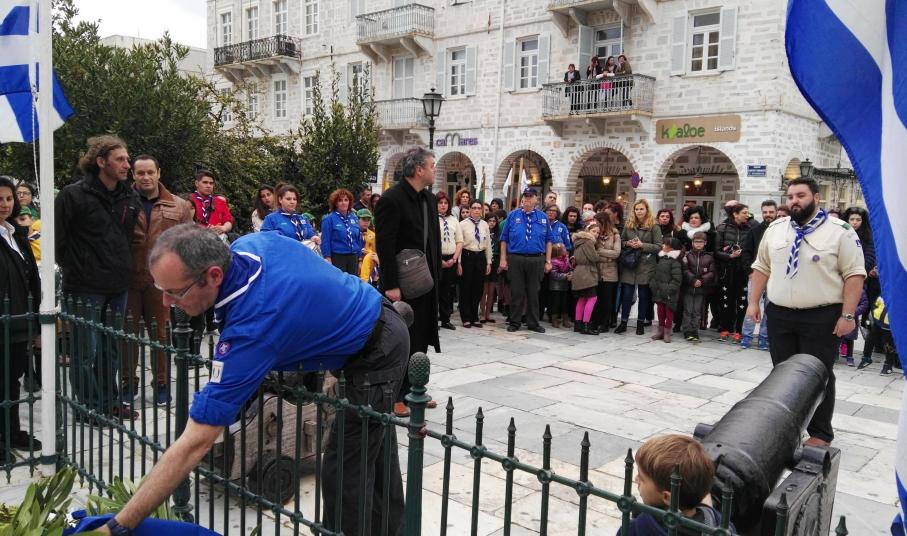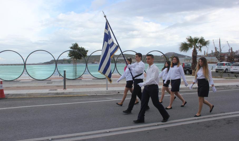 Τυχερά στάθηκαν τα τμήματα μαθητών, σπουδαστών και προσκόπων της Σύρου, τα οποία κατάφεραν να ολοκληρώσουν πριν από λίγα λεπτά την καθιερωμένη στεφάνωση στα μνημεία της Ερμούπολης, πριν από την ακραία επιδείνωση του καιρού και την έναρξη της ισχυρής βροχόπτωσης.