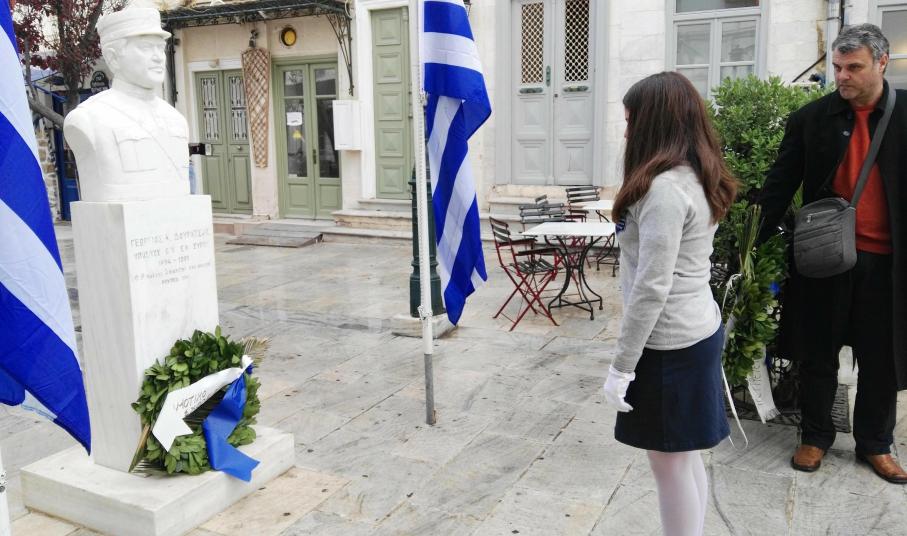 Συγκεκριμένα, στο Μνημείο Μικρασιατικής Μνήμης από τους μαθητές του 6ου Δημοτικού Σχολείου Ερμούπολης και το Σύλλογο Μικρασιατών Ερμούπολης Σύρου, στην προτομή του Ταγματάρχη Γεωργίου Δουράτσου από μαθητές του 1ου Δημοτικού Σχολείου Ερμούπολης και στο Ηρώο των Πεσόντων από μαθητές του ΕΠΑΛ Σύρου, του 3ου Γυμνασίου Σύρου, του 5ου Δημοτικού Σχολείου Ερμούπολης, του Εσπερινού ΕΠΑΛ Σύρου και από σπουδάστριες του ΔΙΕΚ του Γενικού Νοσοκομείου Σύρου.
