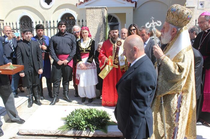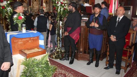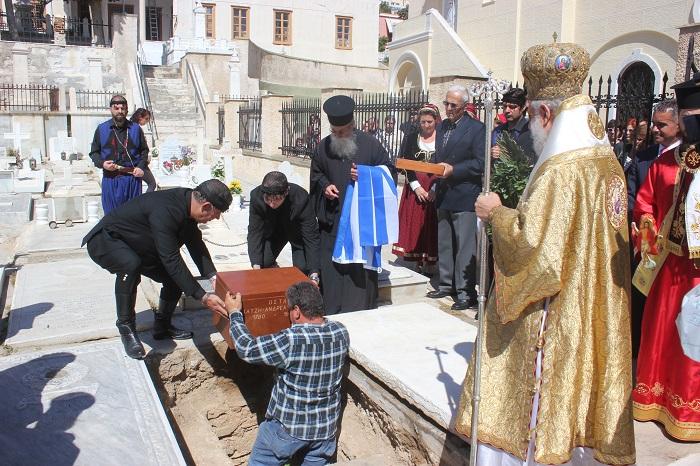 Μετά το πέρας της Λειτουργίας, τελέσθηκε Αρχιερατικό Μνημόσυνο και τα οστά του αειμνήστου Χατζή-Ανδρέα Κριαρά μετεφέρθησαν εν πομπή και ενταφιάσθηκαν στον Οικογενειακό του τάφο, φερόμενα διά χειρών Κρητικών της Σύρου, προπορευόμενης, εντός ειδικής θήκης, της σημαίας της Επανάστασης των Σφακίων του 1821, την οποία διαφυλάσσει, ως οικογενειακό κειμήλιο, ο ομώνυμος εν Σύρω απόγονός του, κ. Ανδρέας Κριαράς. Επιθυμία του κ. Κριαρά είναι η επιστροφή της σημασίας στα Σφακιά, εκεί όπου υψώθηκε για πρώτη φορά, στόχος τον οποίο θα προσπαθήσει να πραγματοποιήσει μελλοντικά ο Δήμος Σφακίων, όπως δήλωσε ο κ. Ζερβός.