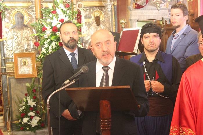 Τον πανηγυρικό λόγο εκφώνησε ο Γραμματέας της Ιεράς Μητροπόλεως και φιλόλογος κ. Αλέξανδρος Μαρκουίζος, τονίζοντας, μεταξύ άλλων, πως «σε μια εποχή, που η ιστορία μας αναθεωρείται, παραχαράσσεται ή περιθωριοποιείται και η Ελληνικότητα νησιών του Αιγαίου και τμημάτων της βόρειας χερσαίας Ελλάδος αμφισβητείται, σε μια εποχή, πολλαπλής-και πρώτιστα ηθικής και αξιακής- κρίσης και κυριαρχίας του ΕΓΩ πάνω στο ΕΜΕΙΣ, μορφές, όπως αυτή του Χατζή Ανδρέα Κριαρά, και συλλογικές δράσεις εθνικής, πατριωτικής και κοινωνικής αλληλεγγύης, όπως αυτές που ανέλαβαν οι πρόγονοί μας, αποτελούν δοκιμασμένες προτάσεις και πρακτικές υπέρβασης των εθνικών και κοινωνικών μας αδιεξόδων».