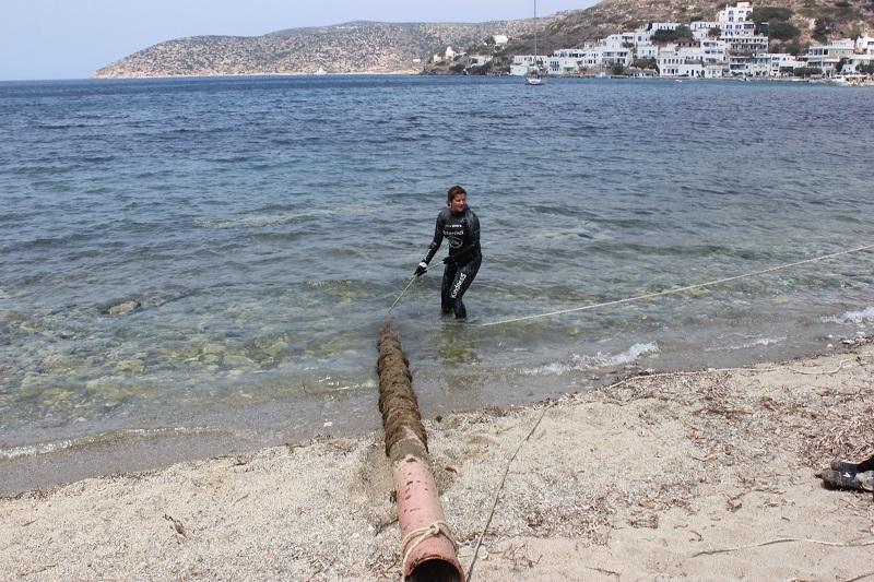 Στο πλαίσιο της αποστολής πραγματοποιήθηκε επίσης καθαρισμός δυσπρόσιτων παραλιών της Αμοργού από μέλη του Ο.Φ.Τ.Σ.Σ. και την «All For Blue».