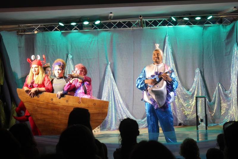 Τις καλύτερες εντυπώσεις άφησε η νέα παραγωγή της θεατρικής ομάδας του Ομίλου «Γύρνα την κλεψύδρα», σε σκηνοθεσία Γεωργίας Ματσούκα, η οποία παρουσιάστηκε στην αίθουσα πολλαπλών χρήσεων του Γυμνασίου-Λυκείου Χώρας, στην αίθουσα πολλαπλών χρήσεων του Δημοτικού Αιγιάλης-Θολαρίων. Η Κίτσα, η τσούχτρα (Σούλα Βασάλου), η κ. Τζέλα, η καβουρίνα (Κική Κοντογιάννη), ο Φοίβος, το δελφίνι (Μαργιάννα Γαδ), η Ερμιόνη, η Γοργόνα (Ράνια Κρητικού) και ο Τάσος ο ψαράς (Στέφανος Βουτσίνος) επέστρεψαν με μία νέα περιπέτεια στο βυθό τον οποίο θέλουν να καταστήσουν ξανά καθαρό και ειρηνικό, έχοντας μαζί τους δύο νέους χαρακτήρες, την Πριγκίπισσα των Κοραλιών (Χριστίνα Πρίντεζη) και το ψαράκι αφηγητή-τραγουδιστή (Αλέξη Μήτση», το οποίο έμαθε στα παιδιά τη μαγική συνταγή που λύνει τα ξόρκια της κακιάς μάγισσας «Χου-Χα»). Ένα από τα δυνατότερα στοιχεία της φετινής παιδικής διαδραστικής παράστασης ήταν τα πρωτότυπα τραγούδια του Αλέξη Μήτση, ο οποίος συμμετείχε για πρώτη φορά σε αποστολή του Ομίλου.