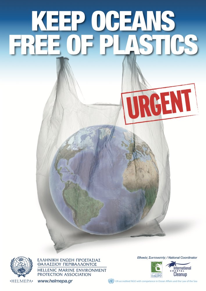 Η πρώτη αφίσα με το «Γλάρο» να πετάει πάνω από τις ακτές απομακρύνοντας μπουκάλια, ποτήρια και άλλα πλαστικά, απευθύνεται στο ευρύτερο κοινό. Την προβολή της σε όλη την Ελλάδα έχουν αναλάβει οι 6.150 μαθητές-μέλη του προγράμματος «Παιδική HELMEPA». Η δεύτερη αφίσα, που απευθύνεται στην ευρύτερη ναυτιλιακή κοινότητα, απεικονίζει την Υδρόγειο εγκλωβισμένη σε πλαστική σακούλα. Το μήνυμα της “Keep Oceans Free of Plastics” - Ας Κρατήσουμε τους Ωκεανούς Καθαρούς από Πλαστικά, θα προβάλλουν παγκόσμια τα Μέλη της HELMEPA, 408 πλοία, 180 διαχειρίστριες εταιρείες και ναυτιλιακοί οργανισμοί και 13.500 Έλληνες ναυτικοί.