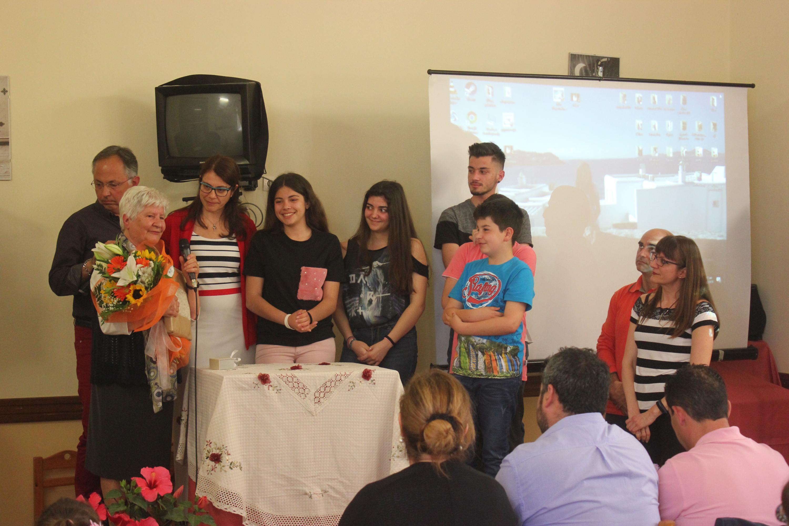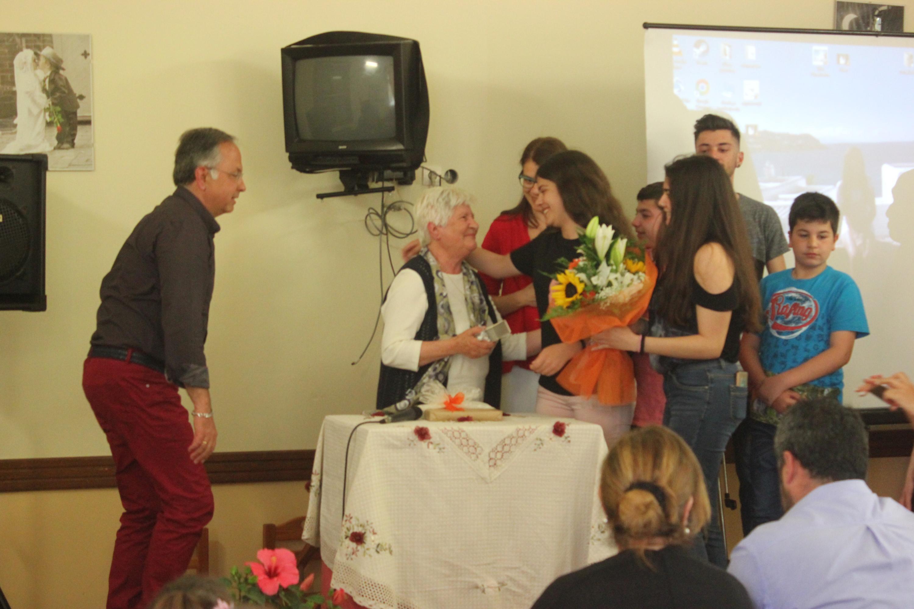 Ιδιαίτερη στιγμή αποτέλεσε η βράβευση της κ. Ευτυχίας Βουτσίνου, τα εγγόνια της οποίας είχαν ετοιμάσει ένα γλυκό βίντεο, ανταποδίδοντας με αυτό την αγάπη που η ίδια τους χάρισε απλόχερα και τους έμαθε να την εκφράζουν και να τη δίνουν με όλη τους τη ψυχή.