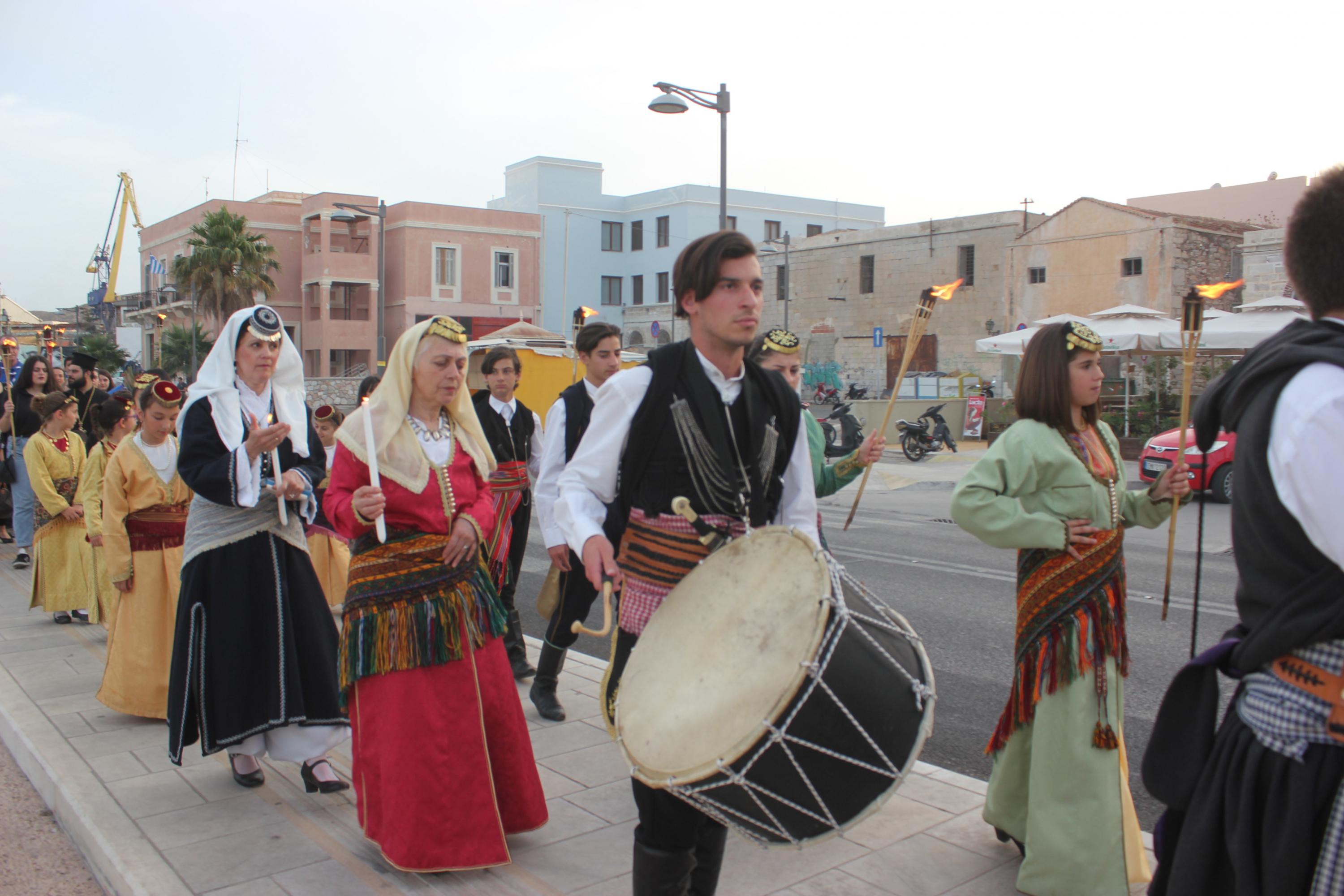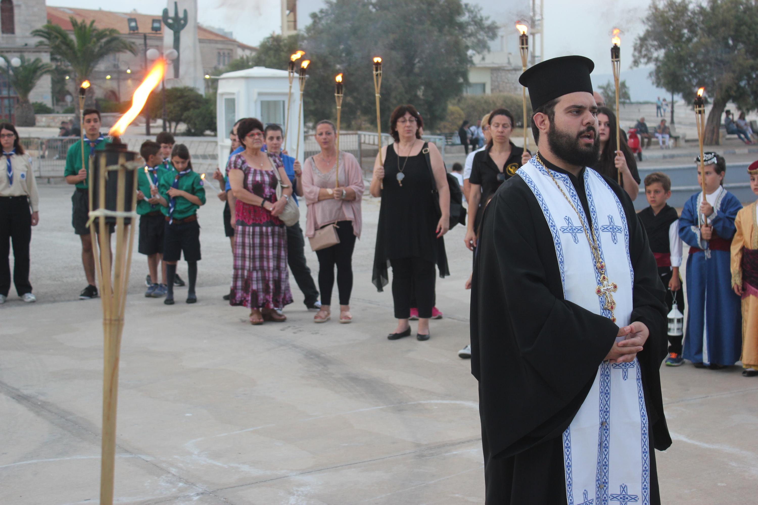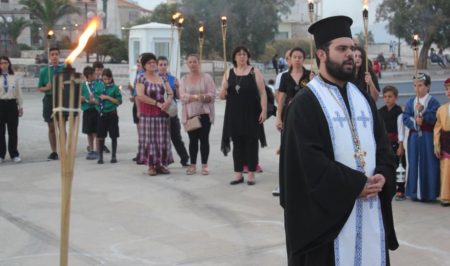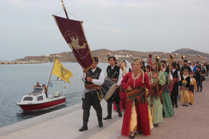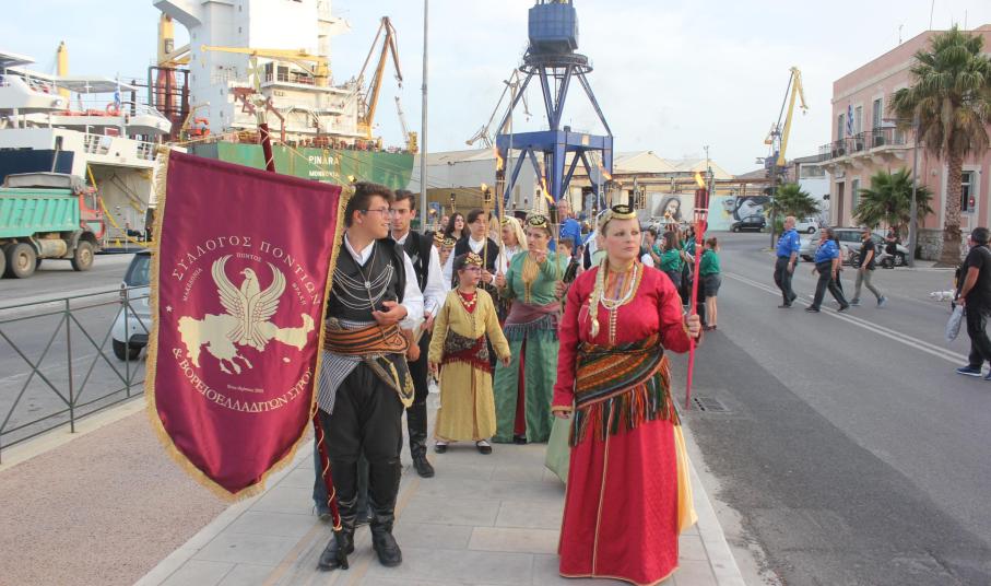 Το απόγευμα του Σαββάτου, με σημείο εκκίνησης τον χώρο αφετηρία των ΚΤΕΛ στο λιμάνι της Ερμούπολης, μέλη και φίλοι του Συλλόγου διήλθαν την παραλιακή οδό, φέροντας λαμπάδες για όλους εκείνους, που άφησαν σάρκα και οστά στη γη του Πόντου και κατέληξαν στην περιοχή «Νησάκι», όπου τελέστηκε επιμνημόσυνη δέηση από τον Αρχιμανδρίτη π. Νικόλαο Γαβαλλά και ρίψη στεφάνου στη θάλασσα για όλους εκείνους που οδηγήθηκαν σε υγρό τάφο.