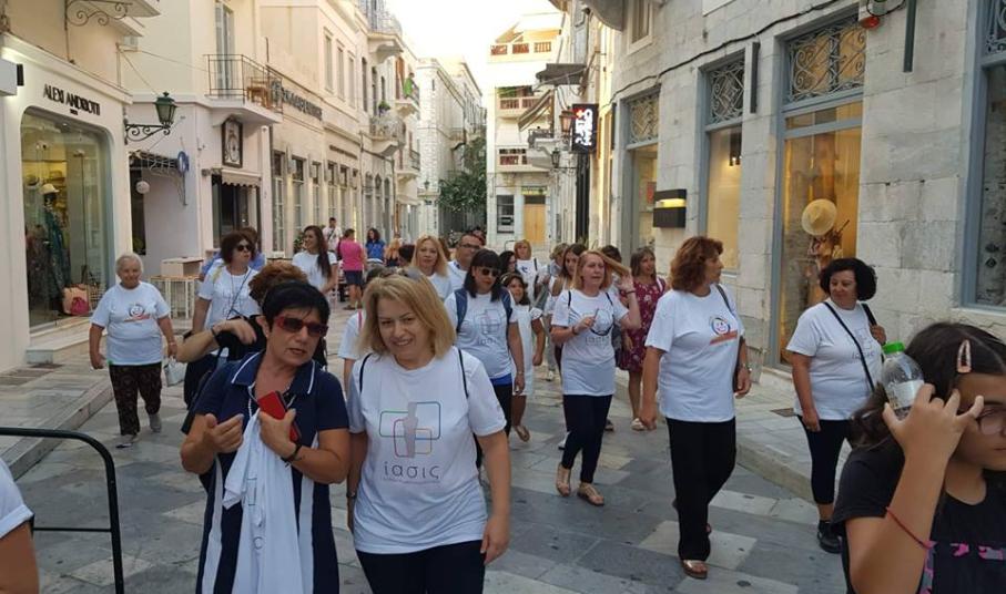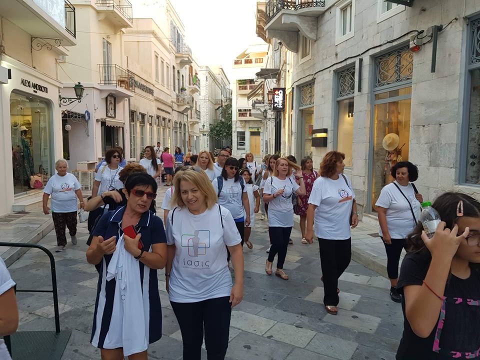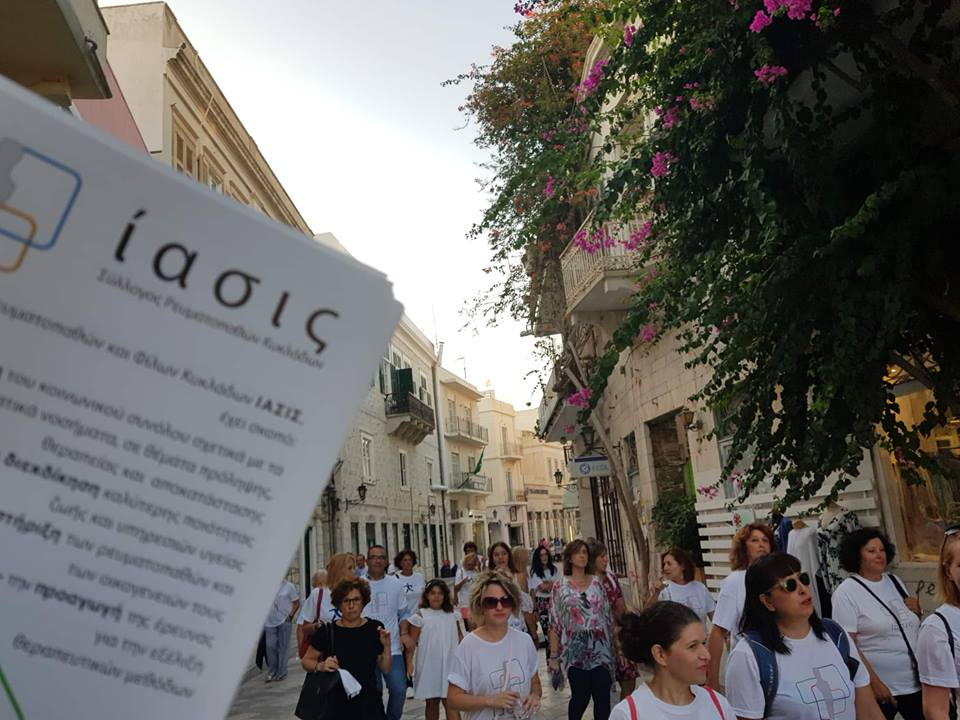 Στο κέντρο της Ερμούπολης ξεχύθηκαν μέλη και νέοι φίλοι του Συλλόγου Ρευματοπαθών και Φίλων Κυκλάδων «ΙΑΣΙΣ», συμμετέχοντας στο καθιερωμένο «Περπάτημα Ζωής και Ελπίδας», που πραγματοποιήθηκε για τέταρτη συνεχή χρονιά στο πλαίσιο των εκδηλώσεων για την παγκόσμια ημέρα της αρθρίτιδας (12 Οκτωβρίου).