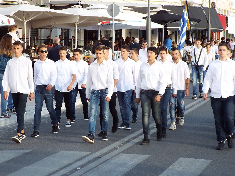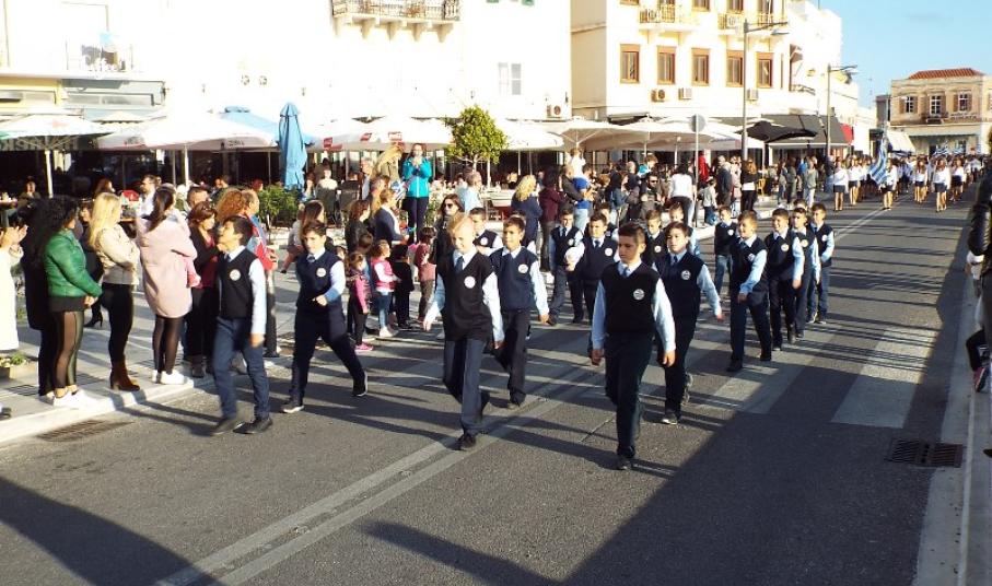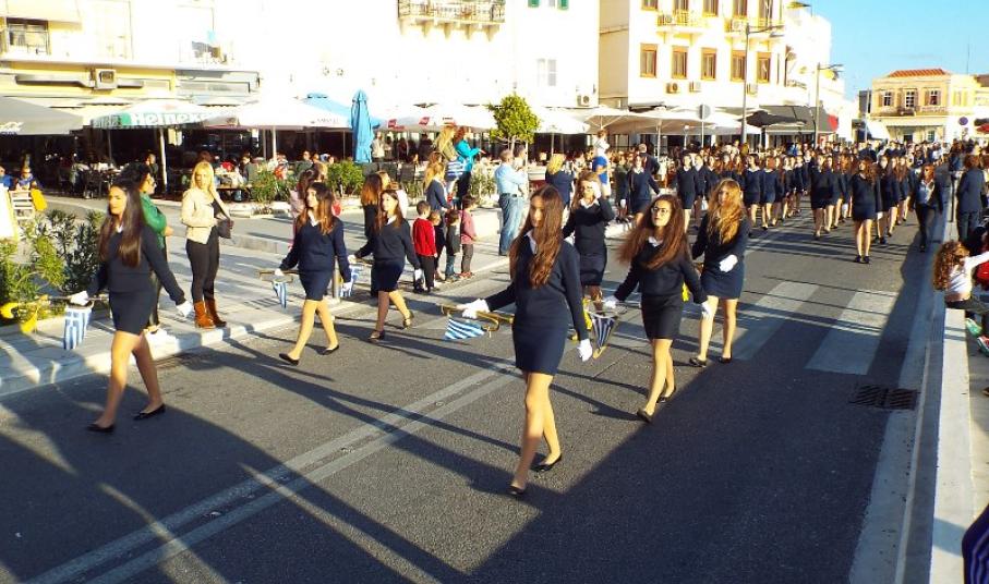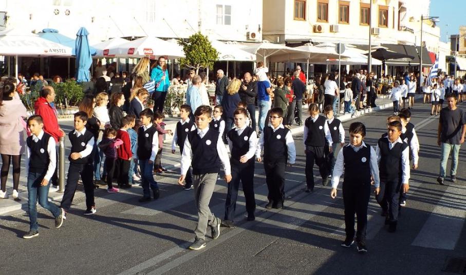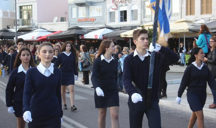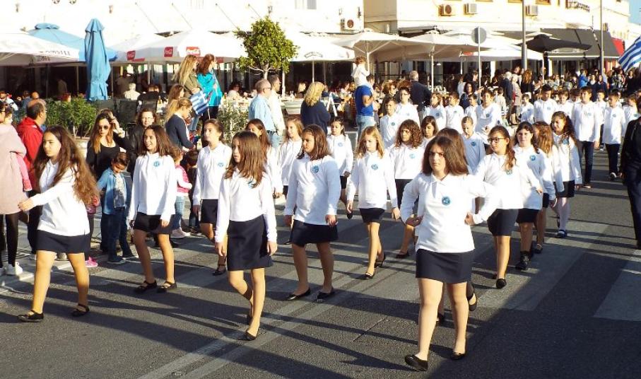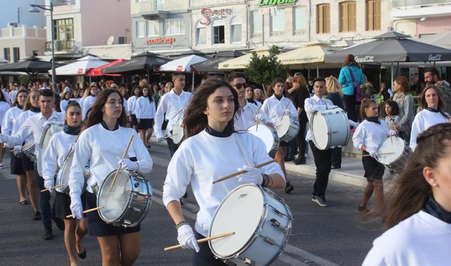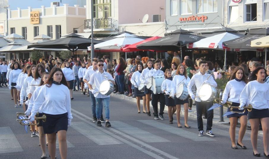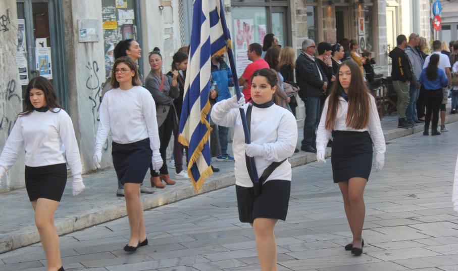 Παραμονή της εθνικής επετείου, τα τμήματα παρέλασαν στο κέντρο της πόλης και χειροκροτήθηκαν από μικρούς και μεγάλους, που συγκεντρώθηκαν τόσο στην πλατεία Ηρώων, όσο και στην αναζωογονημένη παραλιακή ζώνη.
