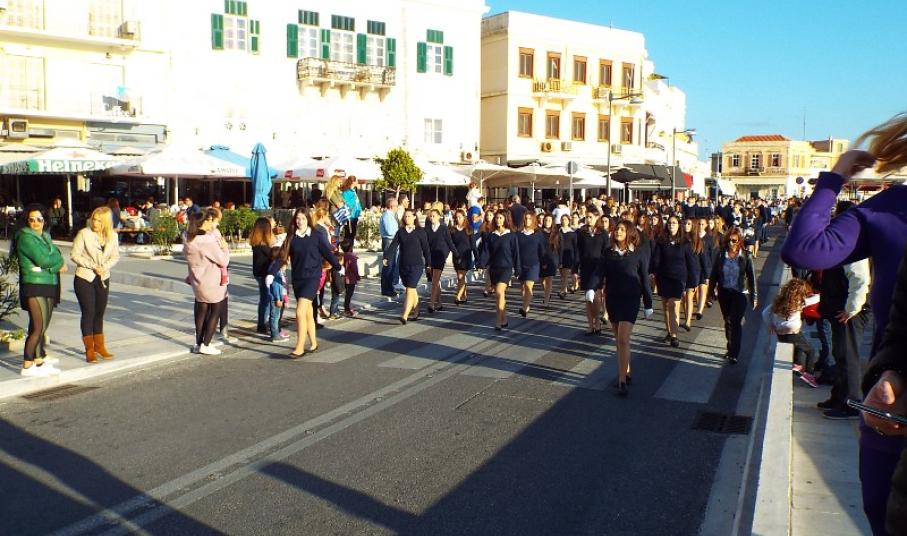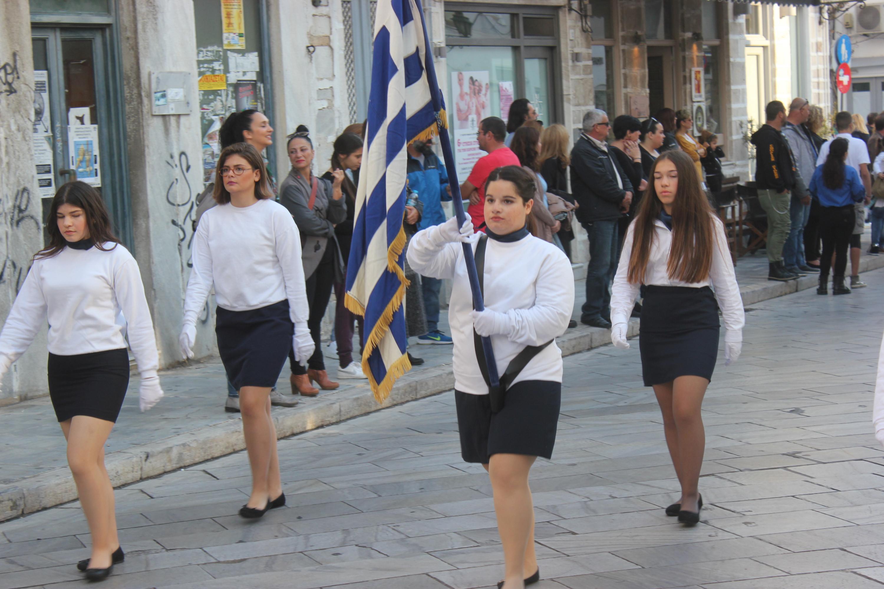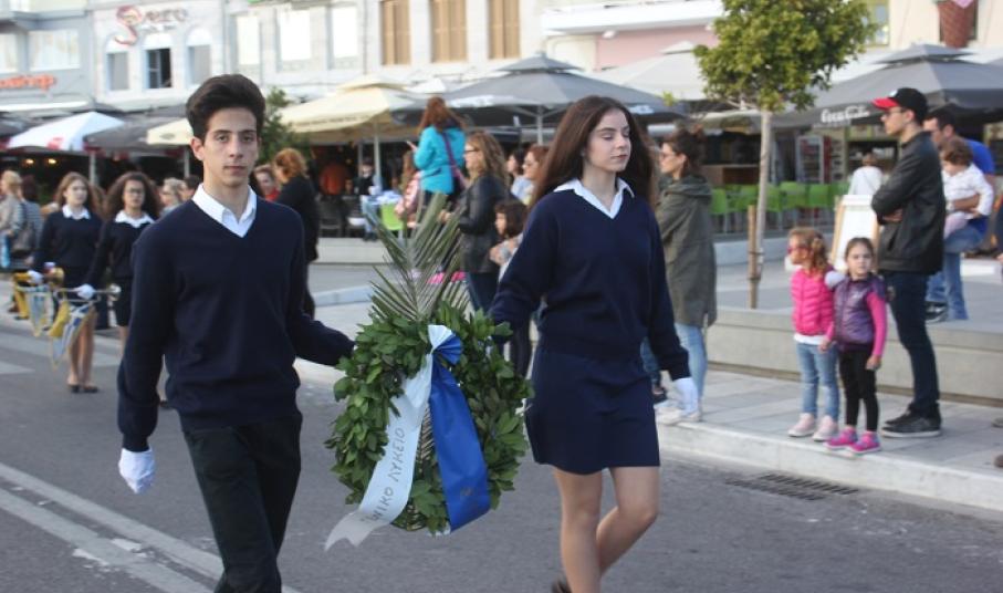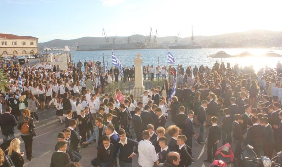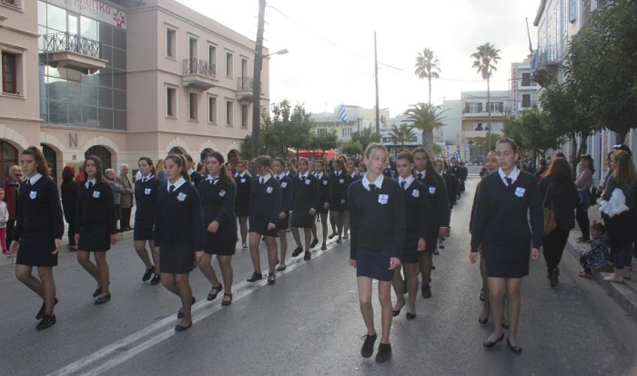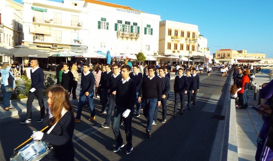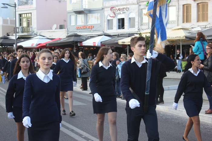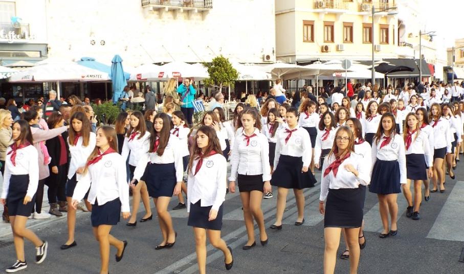 Παραμονή της εθνικής επετείου, τα τμήματα παρέλασαν στο κέντρο της πόλης και χειροκροτήθηκαν από μικρούς και μεγάλους, που συγκεντρώθηκαν τόσο στην πλατεία Ηρώων, όσο και στην αναζωογονημένη παραλιακή ζώνη.