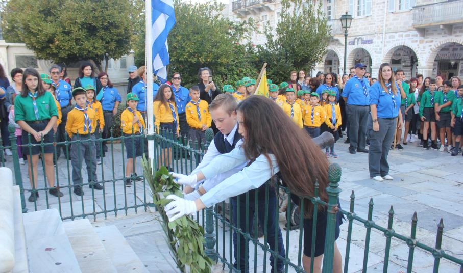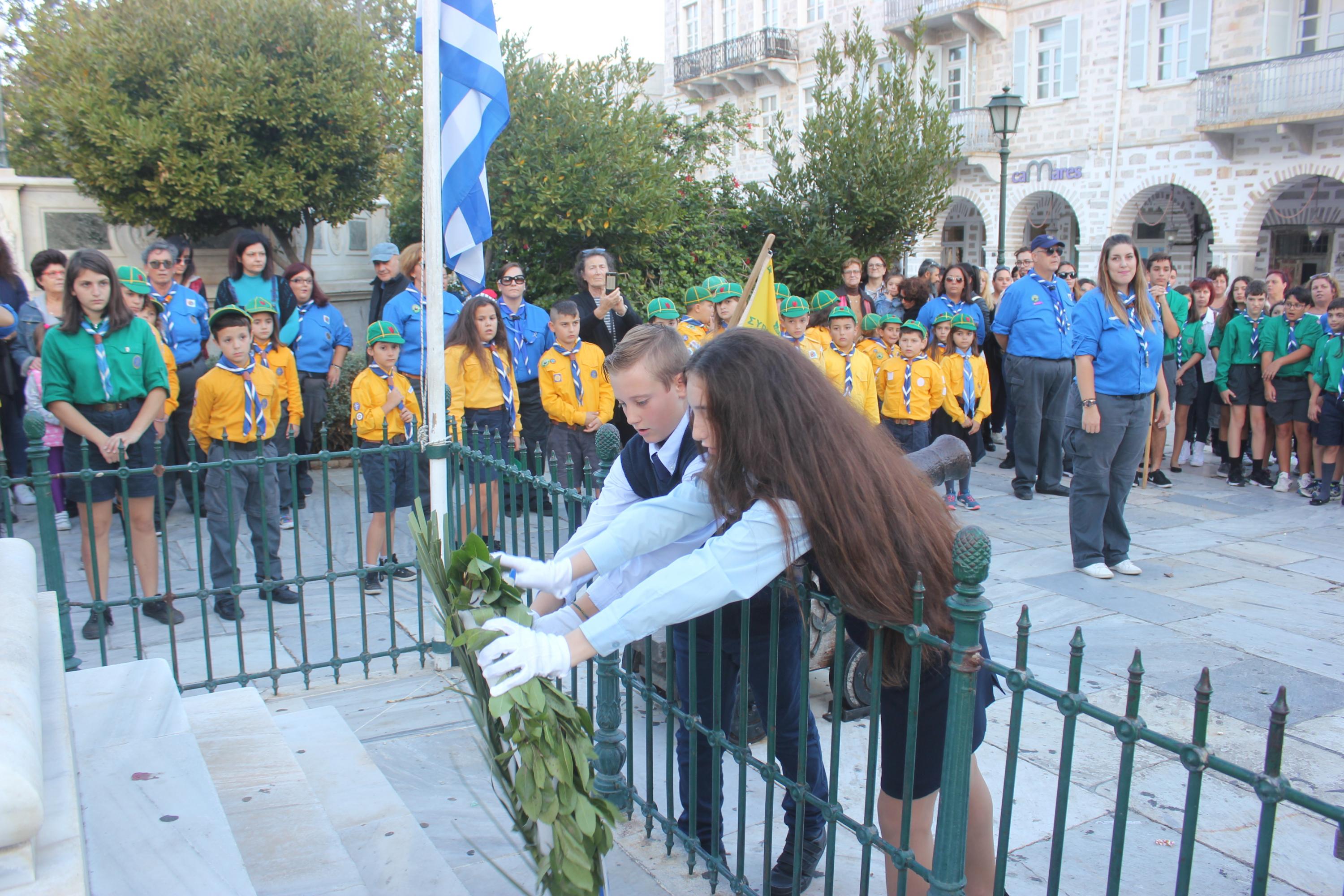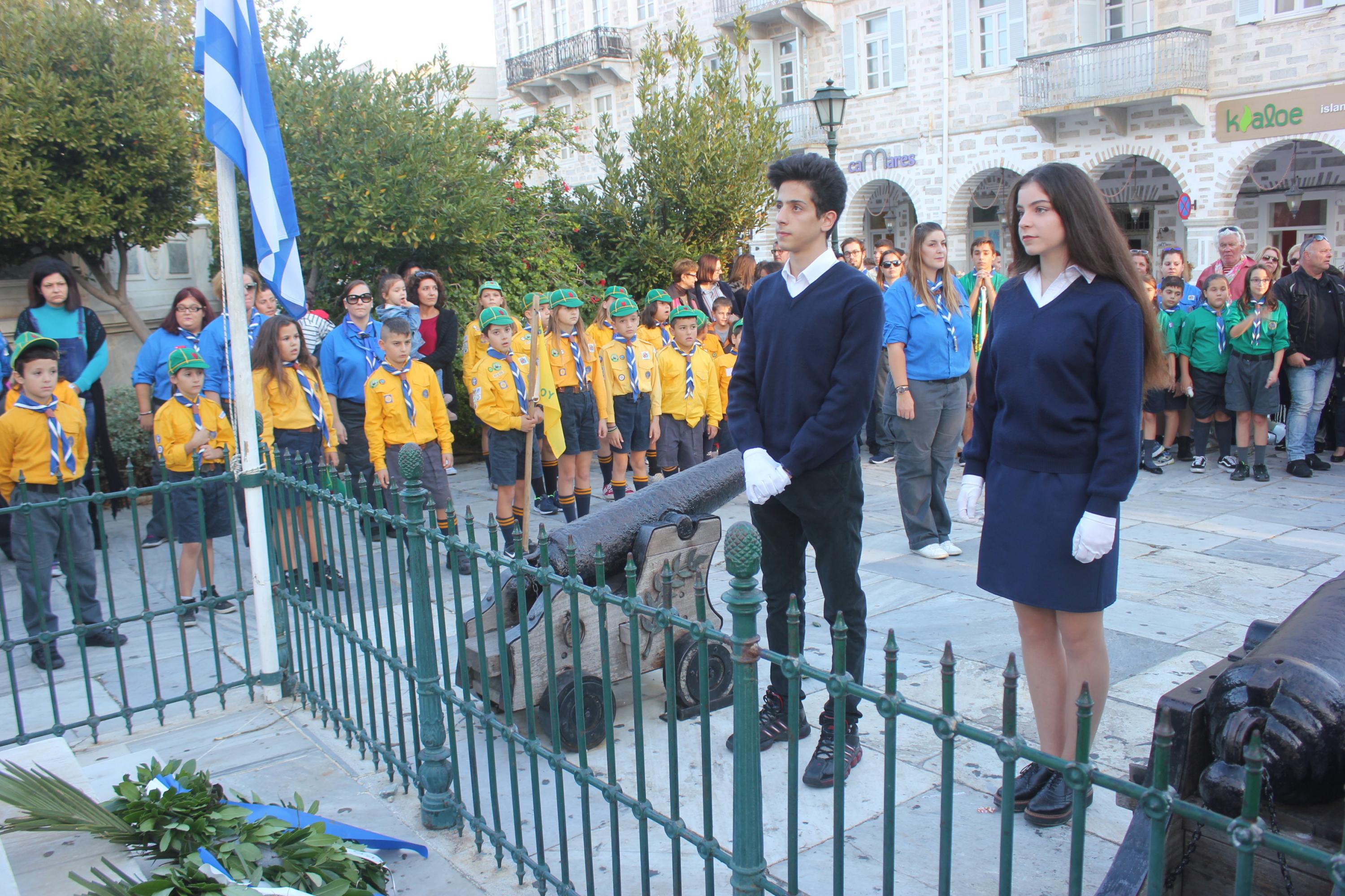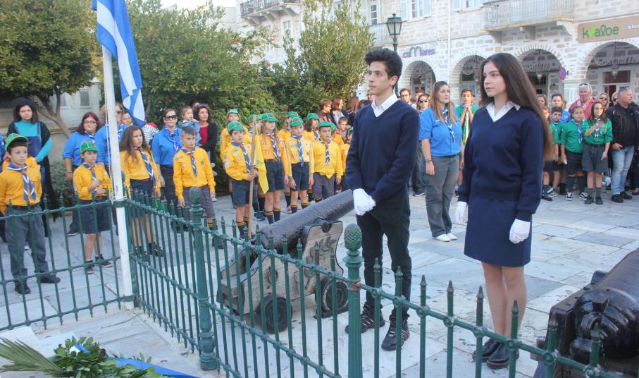 Με ταπεινότητα, σεβασμό και συναίσθηση της ιστορικής μνήμης, μαθητές, σπουδαστές και Πρόσκοποι της Σύρου συμμετείχαν στην καθιερωμένη κατάθεση στεφάνων στα εθνικά ηρώα της Ερμούπολης, στο πλαίσιο του εορτασμού της 28ης Οκτωβρίου 1940.