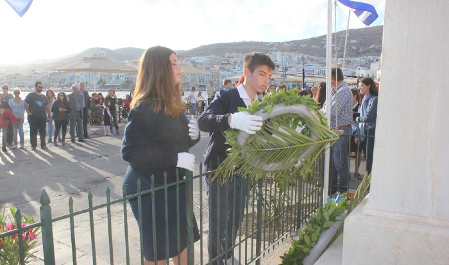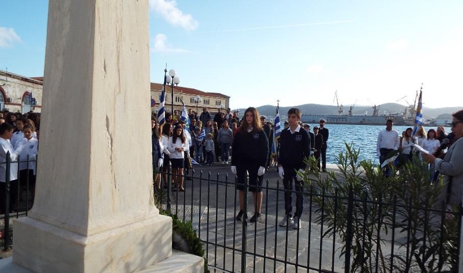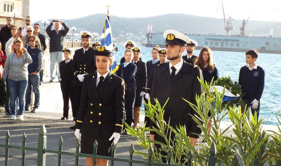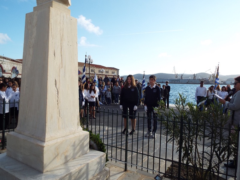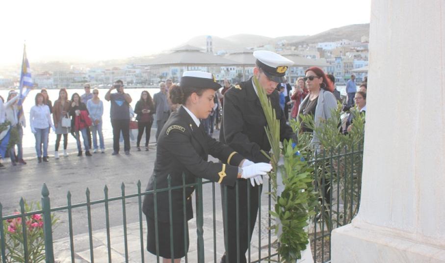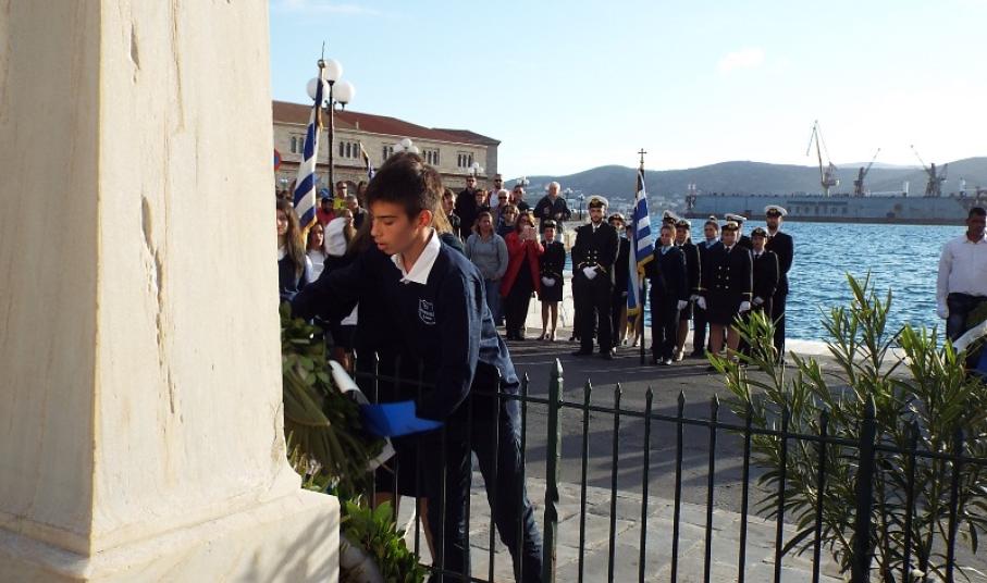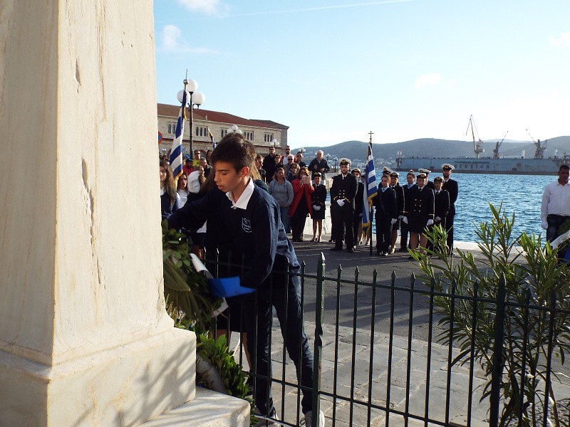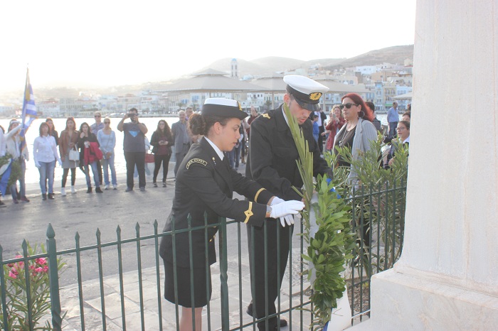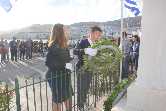 Η στεφάνωση ολοκληρώθηκε με τους μαθητές του Γενικού Λυκείου Σύρου, του 4ου Δημοτικού Σχολείου Ερμούπολης καθώς και το Σώμα Ελλήνων Προσκόπων στον ανδριάντα του Ναυάρχου Μιαούλη.