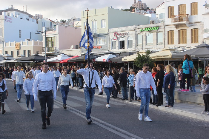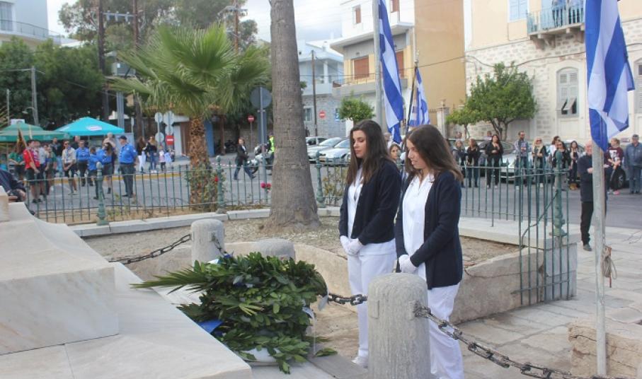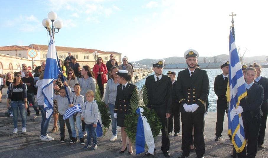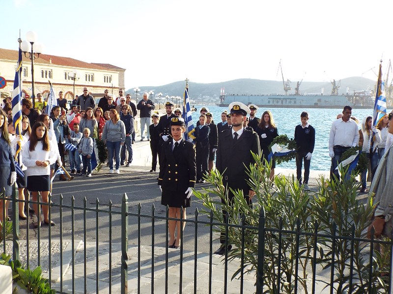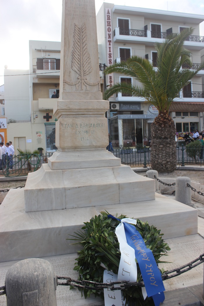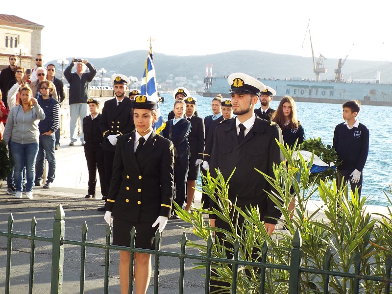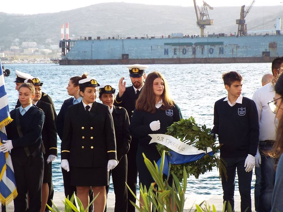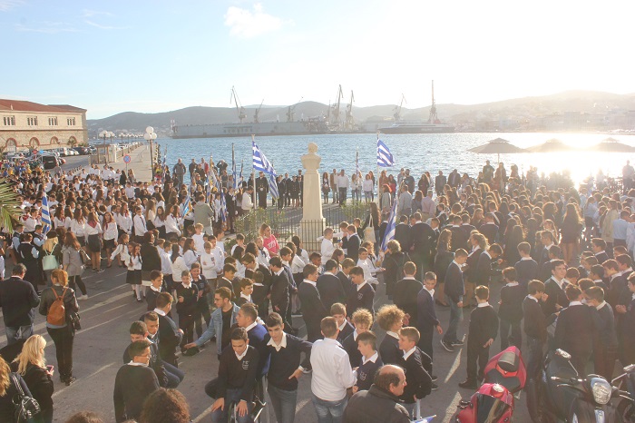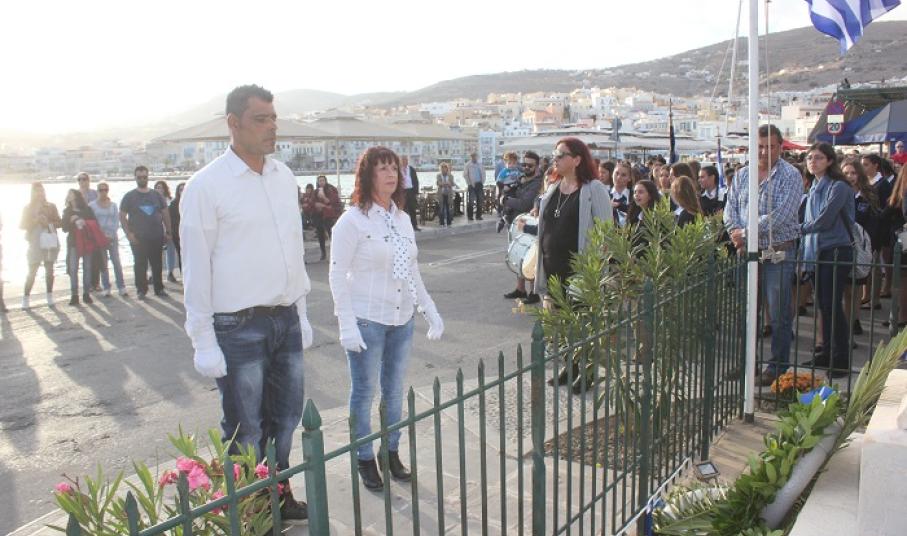 Η στεφάνωση ολοκληρώθηκε με τους μαθητές του Γενικού Λυκείου Σύρου, του 4ου Δημοτικού Σχολείου Ερμούπολης καθώς και το Σώμα Ελλήνων Προσκόπων στον ανδριάντα του Ναυάρχου Μιαούλη.