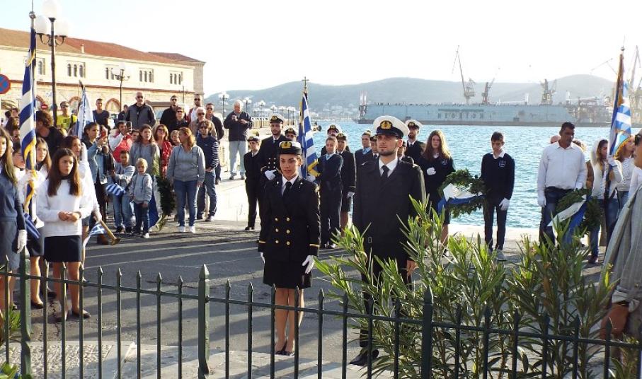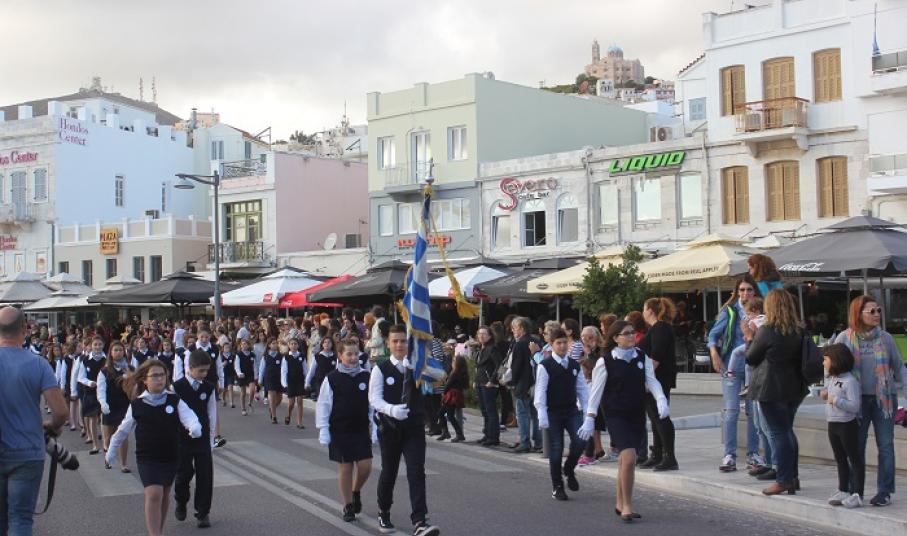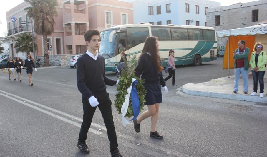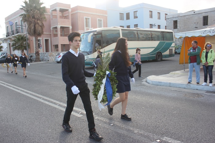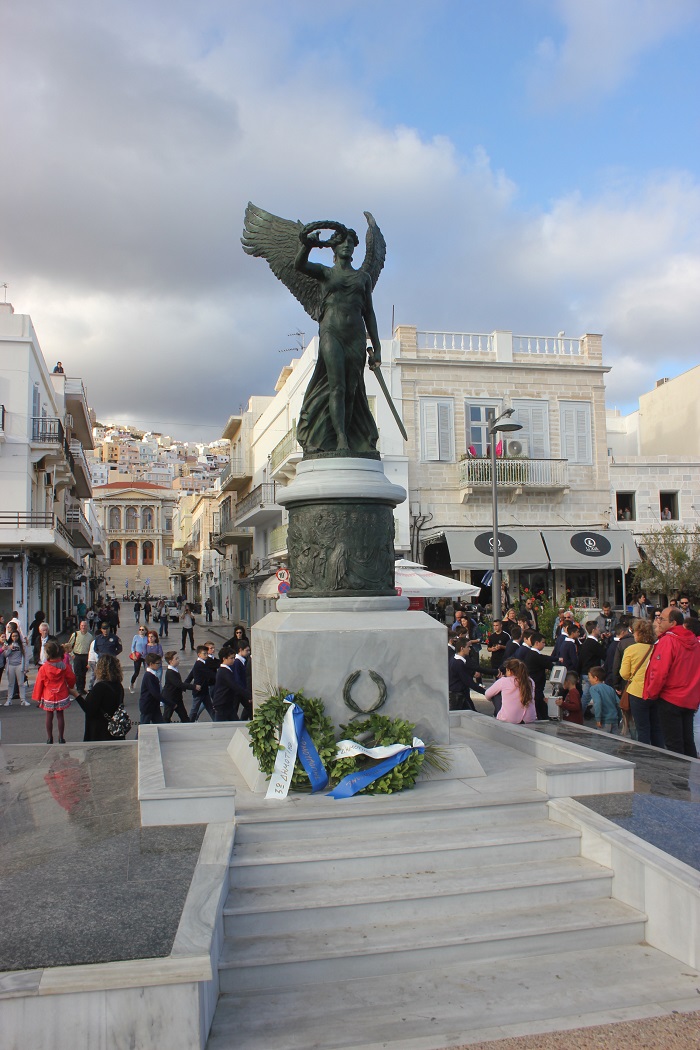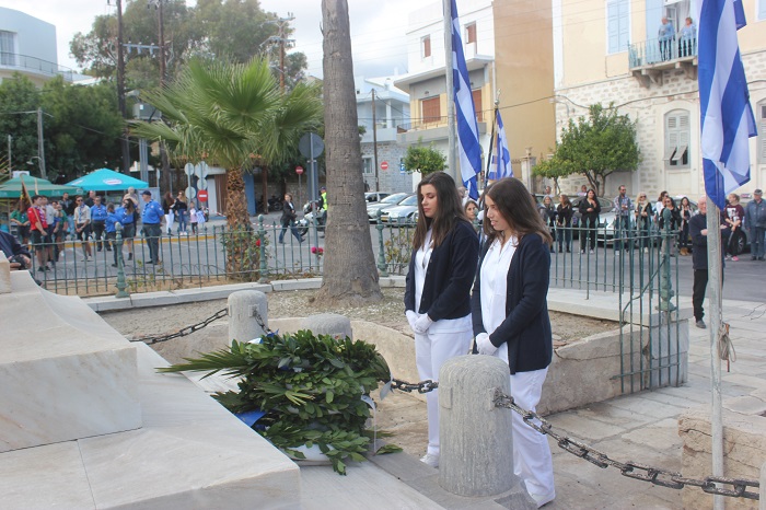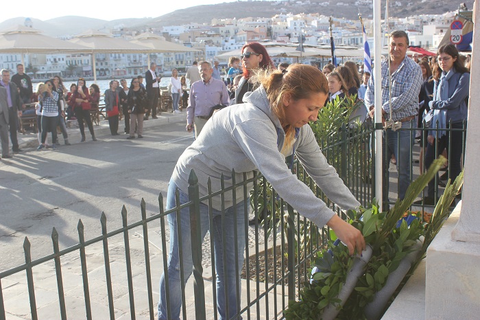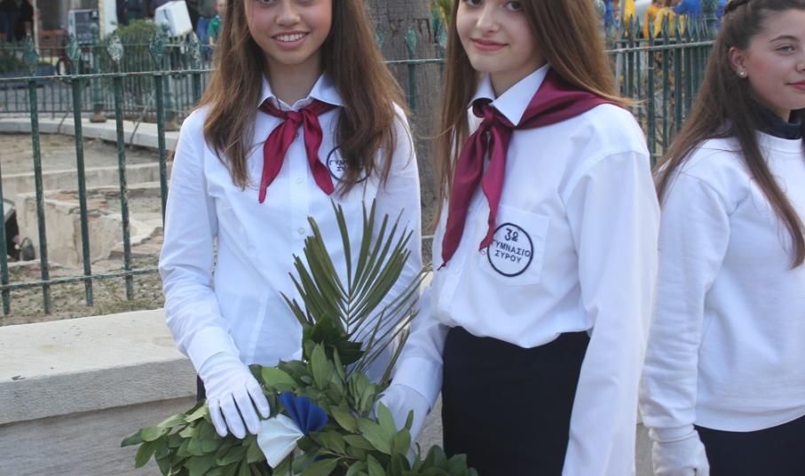 Κατά τη διάρκεια της παρέλασης, οι μαθητές του ΕΠΑΛ Σύρου, του 3ου Γυμνασίου Σύρου, του 5ου Δημοτικού Σχολείου Ερμούπολης, του Εσπερινού ΕΠΑΛ Σύρου και σπουδάστριες του Δημόσιου Ινστιτούτου Επαγγελματικής Κατάρτισης (ΔΙΕΚ) του Γενικού Νοσοκομείου Σύρο κατέθεσαν στεφάνι στο Ηρώο των Πεσόντων, ενώ μαθητές του 1ου Γυμνασίου Σύρου απέτισαν φόρο τιμής στο Μνημείο Πεσόντων Ιερολοχιτών. Ακολούθως, μαθητές του 2ου και 3ου Δημοτικού Σχολείου Ερμούπολης κατέθεσαν στεφάνι στο Μνημείο Εθνικής Αντίστασγς.