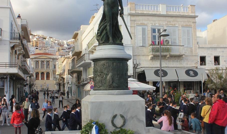 Υπενθυμίζεται ότι αύριο, ανήμερα της Εθνικής Επετείου της 28ης Οκτωβρίου α τελεστεί επίσημη Δοξολογία στον Ιερό Ναό του Αγίου Νικολάου, χοροστατούντος του Σεβασμιωτάτου Μητροπολίτη Σύρου κ. Δωροθέου Β'. Στη συνέχεια, θα ακολουθήσει επιμνημόσυνη δέηση στο Εθνικό Ηρώο της πόλης και ο εορτασμός θα ολοκληρωθεί με την παρέλαση της μαθητιώσας νεολαίας στην πλατεία Μιαούλη.
