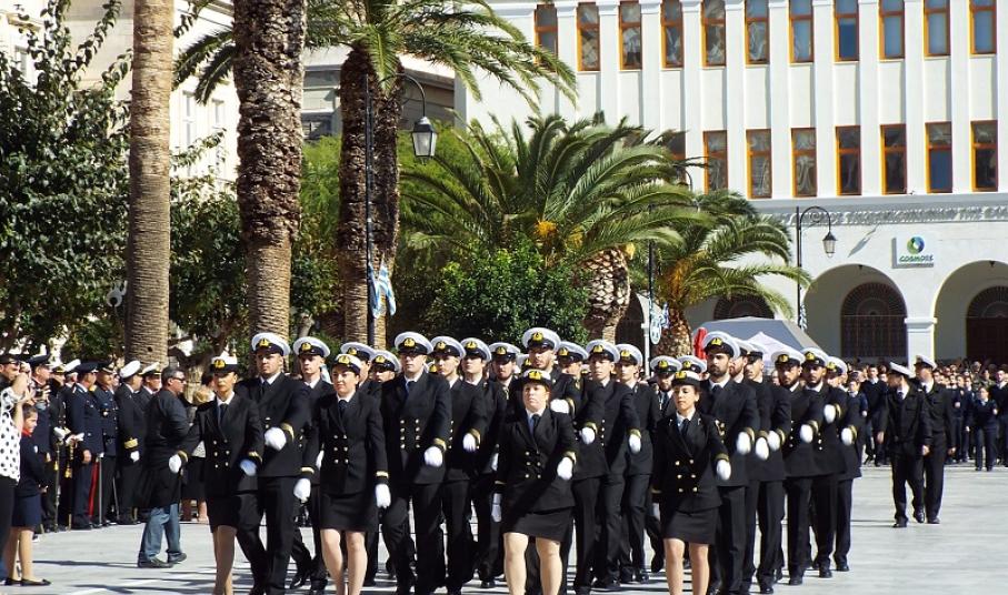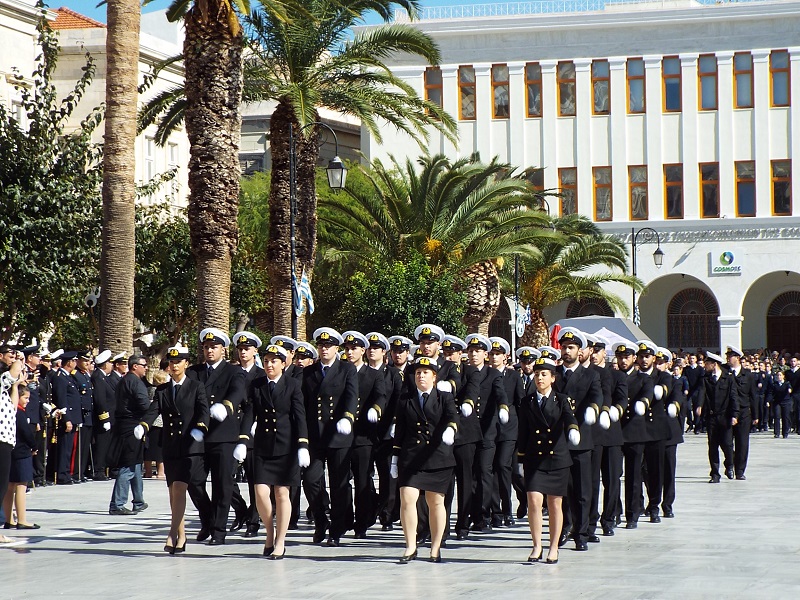 Μαθητές, σπουδαστές, μέλη αθλητικών και πολιτιστικών συλλόγων, καθώς και το Τάγμα Εθνοφυλακής Ερμούπολης παρέλασαν ενώπιον του Βουλευτή Κυκλάδων Αντώνη Συρίγου, εκπροσώπων της τοπικής αυτοδιοίκησης, των στρατιωτικών αρχών και των σωμάτων ασφαλείας, φορέων, καθώς και πλήθους κόσμου.