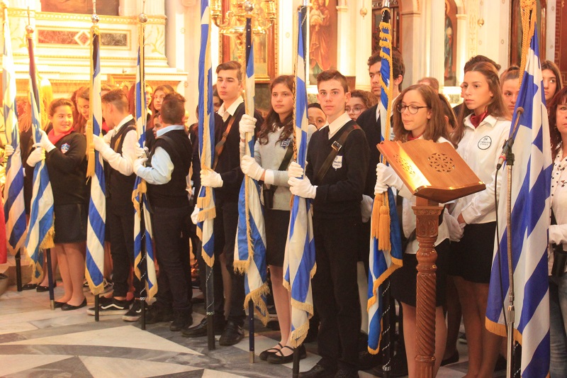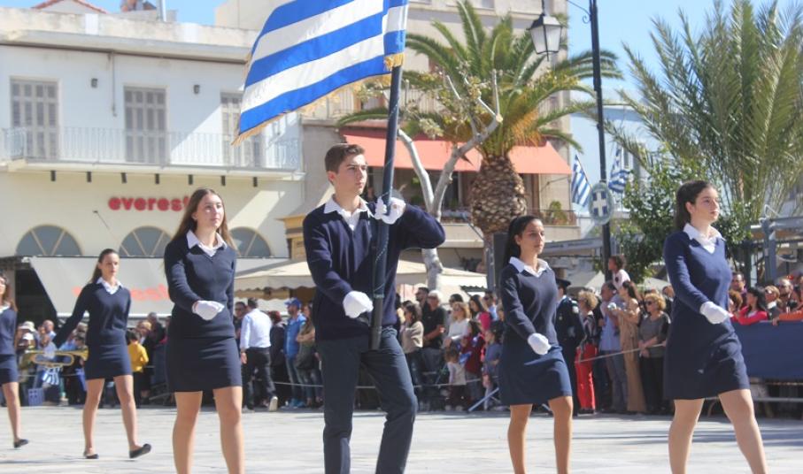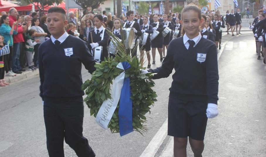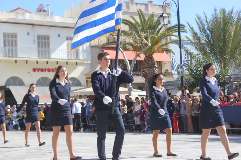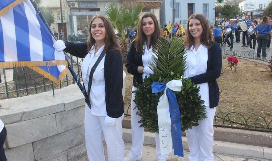 Ο τριήμερος εορτασμός του μεγαλοπρεπούς ελληνικού «ΟΧΙ» της 28ης Οκτωβρίου κορυφώθηκε ανήμερα της Εθνικής Επετείου με την καθιερωμένη μαθητική παρέλαση στην πλατεία Μιαούλη.