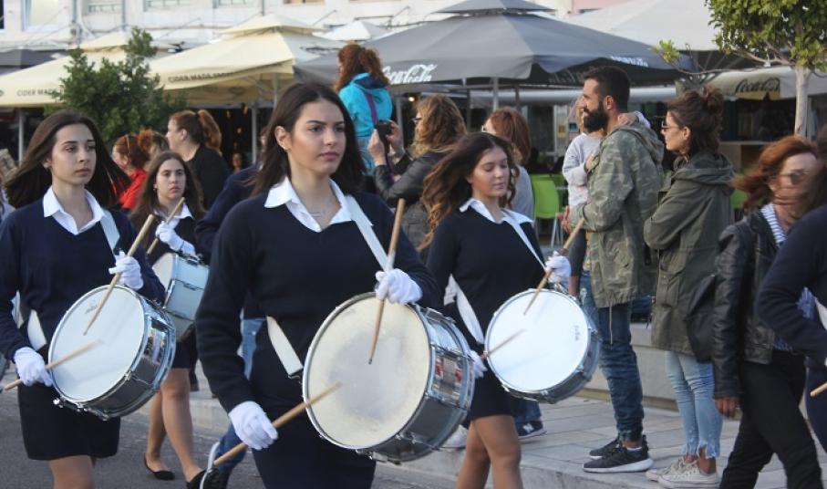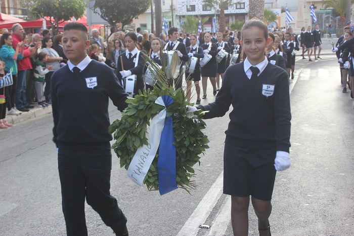 Παραμονή της εθνικής επετείου, τα τμήματα παρέλασαν στο κέντρο της πόλης και χειροκροτήθηκαν από μικρούς και μεγάλους, που συγκεντρώθηκαν τόσο στην παραλιακή ζώνη, όσο και περιμετρικά της πλατείας Μιαούλη.