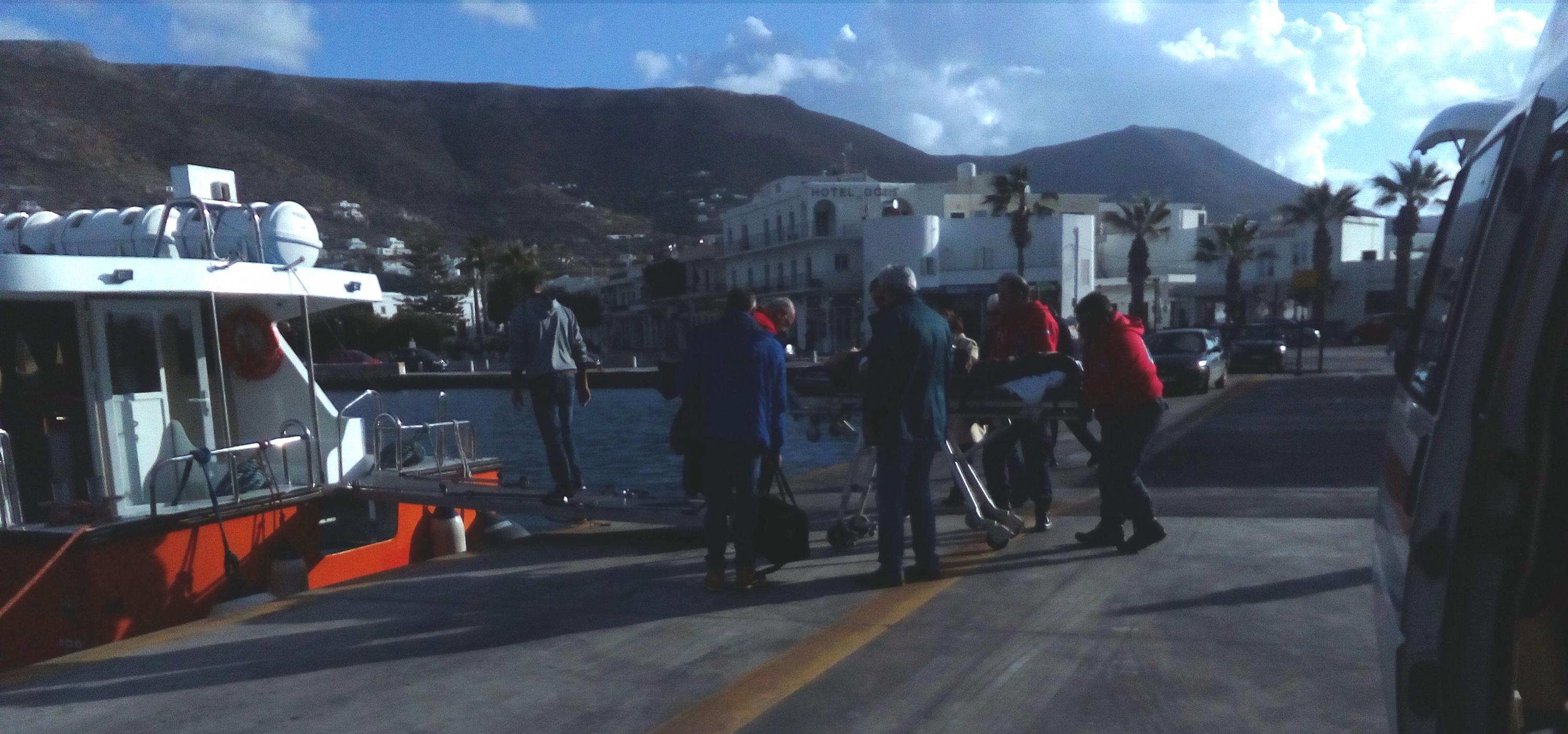 Κατά το διάστημα αναμονής του πλωτού τα μέλη της ΕΟΔ πραγματοποίησαν μια ακόμα διακομιδή ασθενούς από τη Μάρπησσα στο Κέντρο Υγείας.