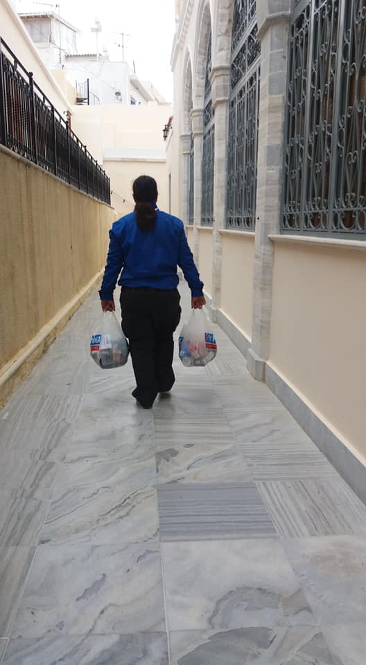 Πάνω από 100 σακούλες μοιράστηκαν σε οικογένειες του νησιού, με τη βοήθεια ιερέων τόσο από την Ιερά Μητρόπολη Σύρου, όσο και από την Καθολική Επισκοπή.