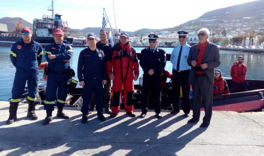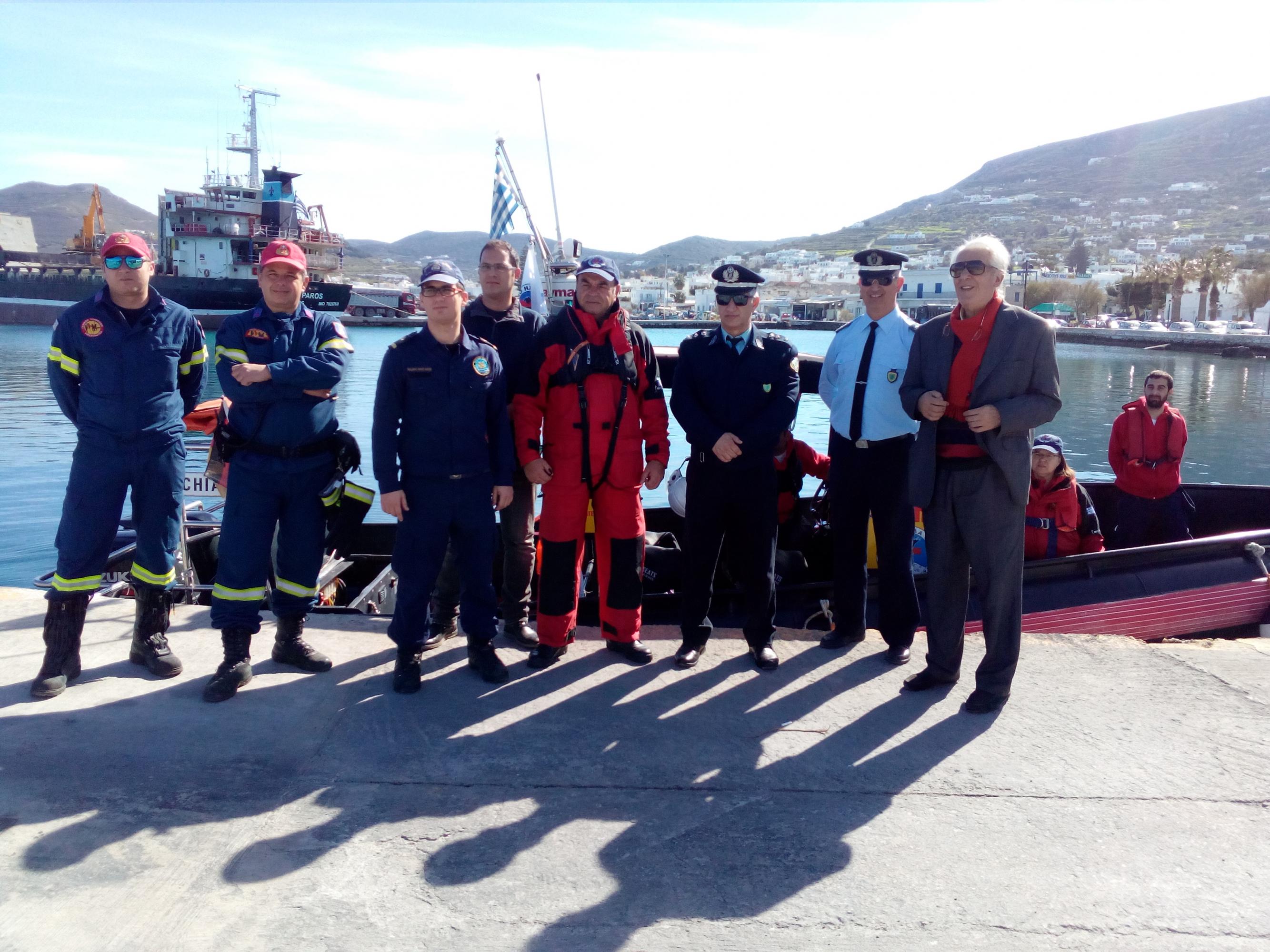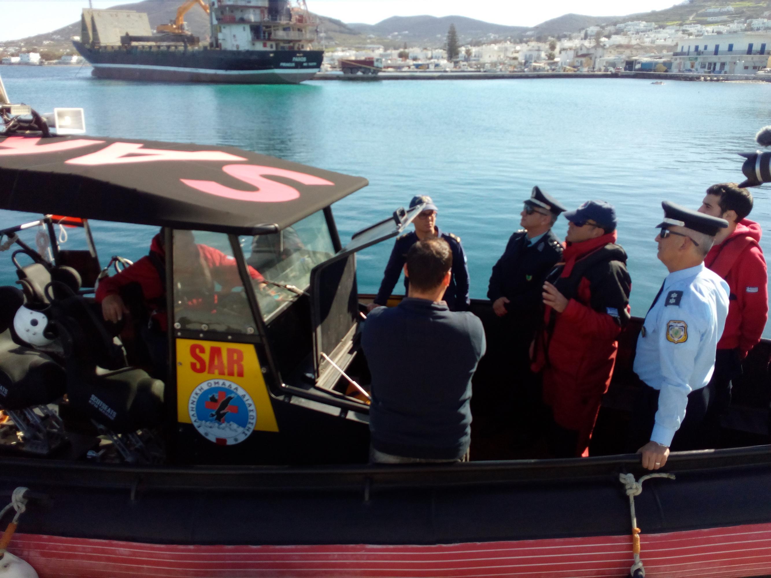 Το πρωί της Κυριακής 17-3-2019 πραγματοποιήθηκε, στο λιμάνι της Παροικιάς, παρουσίαση του Διασωστικού σκάφους CHIARA της Ελληνικής Ομάδας Διάσωσης – Παραρτήματος Κυκλάδων, το οποίο παραχωρήθηκε από την Κεντρική Διοίκηση της ΕΟΔ, για να καλύψει ανάγκες στην περιοχή των Κυκλάδων. Το σκάφος, που είναι δωρεά της γερμανικής διασωστικής οργάνωσης DGzRS (Deutsche Gesellschaft zur Rettung Schiffbrüchiger), επιχειρούσε μέχρι πρόσφατα στην περιοχή Βορείου Συγκροτήματος Δωδεκανήσου, στο Παράρτημα της ΕΟΔ στην Κω. Στην παρουσίαση παραβρέθηκαν ο Λιμενάρχης Πάρου, Υποπλοίαρχος κος Τσαντουλής Νικόλαος και ο Σημαιοφόρος κος Μητροπίας Κωνσταντίνος, ο Διοικητής του Α.Τ. Πάρου, Αστυνόμος Α΄ κος Μποζίκης Γεώργιος και ο Υπαστυνόμος Α΄ κος Τρουσούγκας Κωνσταντίνος, πυροσβέστες από το Πυροσβεστικό Κλιμάκιο Πάρου, ο Πρόεδρος του Κέντρου Υγείας Πάρου, κος Λάβδας Σπυρίδωνας, ο υπεύθυνος Πολιτικής Προστασίας του Δήμου Πάρου, κος Καβάλλης Εμμανουήλ. Ο Έπαρχος Πάρου κος Μπιζάς Κωνσταντίνος είχε ενημερώσει ότι, λόγω ανειλημμένων υποχρεώσεων, δεν θα μπορέσει να παραβρεθεί. Στη συνέχεια το σκάφος με το πλήρωμά του μετέβη στην Αντίπαρο, όπου έγινε παρουσίαση στο Δήμαρχο Αντιπάρου κο Φαρούπο Αναστάσιο και τον Πρόεδρο του Δημ. Συμβουλίου Δήμου Αντιπάρου, κο Σκούρτη Σωτήρη.