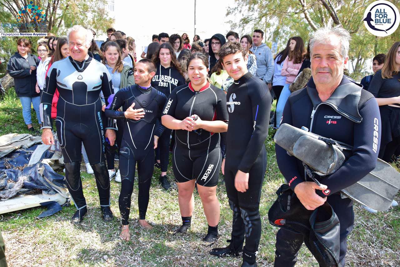 Με την παρουσία και συμβολή του περιφερειάρχη Νοτίου Αιγαίου Γιώργου Χατζημάρκου, και με τον συντονισμό της επιχείρησης από την Κατερίνα Τοπούζογλου, εκπαιδεύτρια ελεύθερης κατάδυσης, παγκόσμια πρωταθλήτρια υποβρύχιας σκοποβολής και ιδρύτρια του Οργανισμού για την προστασία του θαλάσσιου οικοσυστήματος “All for Blue”.