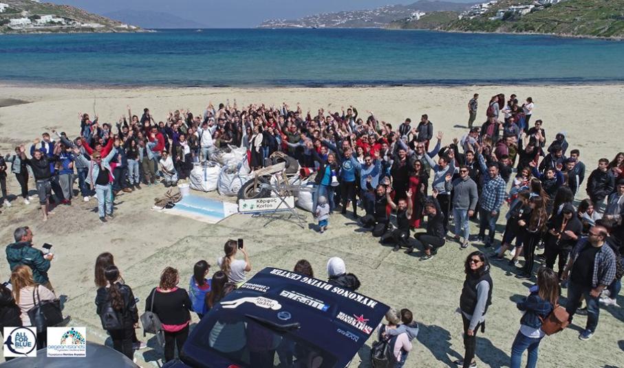 Ακόμη μεγαλύτερη ήταν η «σοδειά» στο νησί της Μυκόνου, όπου την επόμενη ημέρα 400  μαθητές  του Γενικού και Επαγγελματικού Λυκείου, τέσσερις επαγγελματίες πιστοποιημένοι δύτες από το  Mykonos Diving Center Gerasimos Voulgaris , ανεξάρτητοι εθελοντές  και  εκπρόσωποι του Λιμενικού Σώματος κατάφεραν να βγάλουν από την ακτή και τον βυθό της παραλίας του Κόρφου στον Ορνό 1300 κιλά  σκουπίδια.