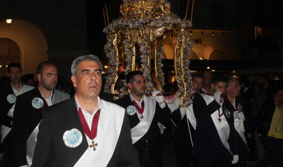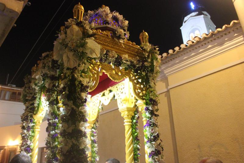 Τη λιτάνευση πλαισίωσε η Φιλαρμονική του Δήμου Σύρου – Ερμούπολης, παιανίζοντας πένθιμα εμβατήρια, υπό τη διεύθυνση της αρχιμουσικού Alice Labarche.
