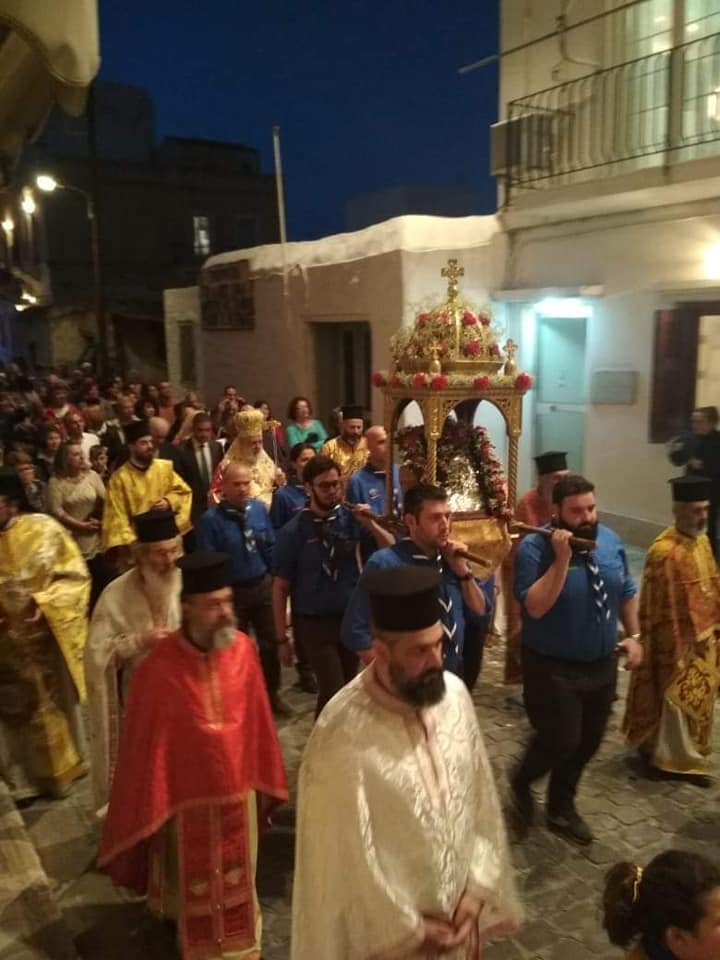 Το βράδυ της Μεγάλης Παρασκευής, ο Μητροπολίτης Σύρου προέστη της Ακολουθίας του Επιταφίου Θρήνου στον Ιερό Μητροπολιτικό Ναό της Μεταμορφώσεως του Σωτήρος και ακολούθως ετέθη επικεφαλής της λιτανευτικής πομπής του ιερού Επιταφίου προς την ιστορική Πλατεία Μιαούλη Ερμουπόλεως.
