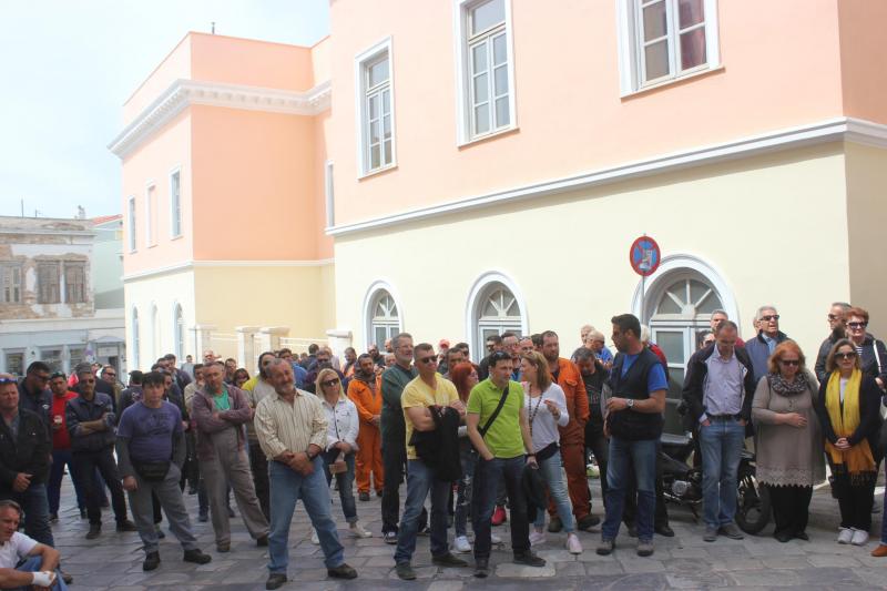 Με σύσσωμη τη συμμετοχή των εργαζομένων του «Νεωρίου» πραγματοποιήθηκε χθες το πρωί η απεργιακή συγκέντρωση στο Εργατικό Κέντρο Κυκλάδων για τον εορτασμό της Εργατικής Πρωτομαγιάς.