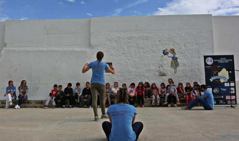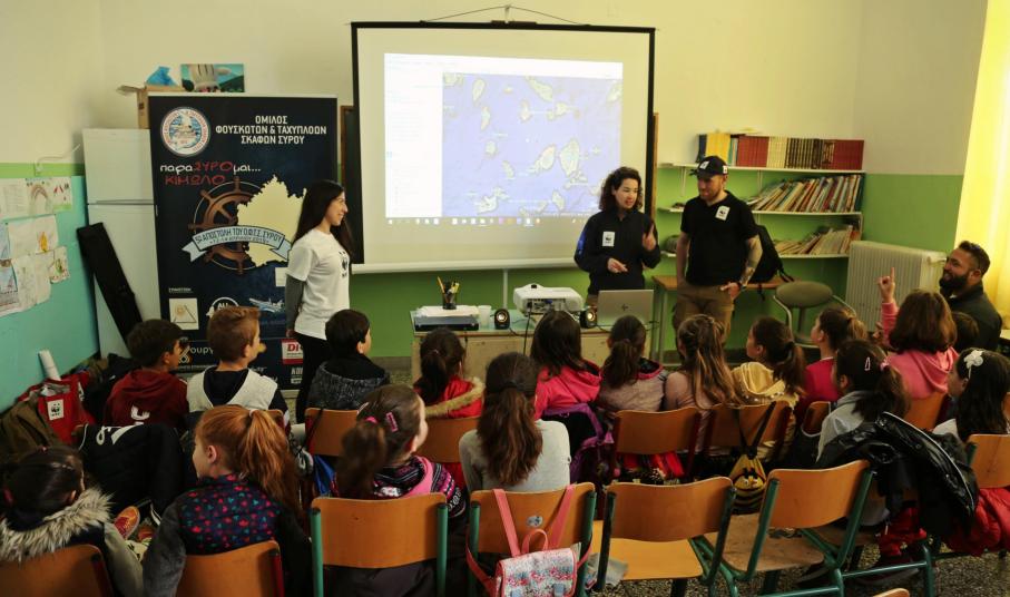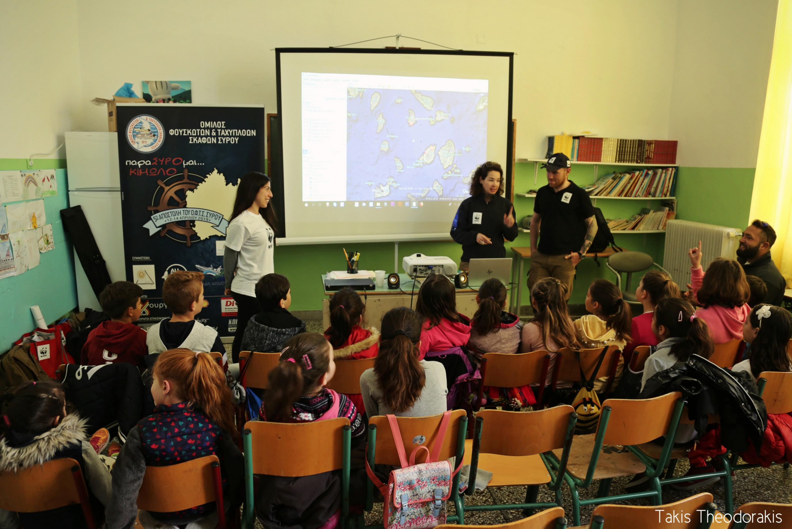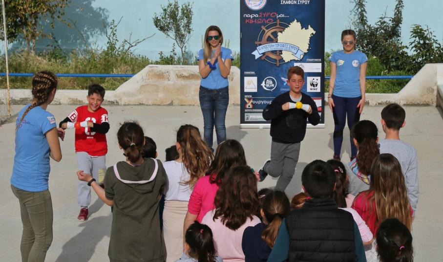 Την επόμενη μέρα είχαν προγραμματιστεί οι εξής δράσεις: στις 10:00 προβολή του ντοκιμαντέρ του WWF «Δημιουργώντας μια θαλάσσια προστατευόμενη περιοχή» στο σχολείο, στην αίθουσα που είχε προετοιμαστεί από την προηγούμενη ημέρα ενώ στις 10.30 τα παιδιά που το παρακολούθησαν μεταφέρθηκαν με λεωφορείο που είχε κλείσει ο Όμιλος στην παραλία της Ψάθης για να συμμετέχουν στη δράση του WWF «Γαλάζια Εξερεύνηση». Τα παιδιά του νησιού απασχολήθηκαν από τα μέλη του WWF, με τη συνδρομή των παιδαγωγών του Ομίλου, σε ένα όμορφο παιχνίδι που είχε σκοπό να τα ευαισθητοποιήσει στην υπεύθυνη κατανάλωση των αλιευμάτων και στη συνέχεια πάλι με λεωφορείο μεταφέρθηκαν στο Χωριό .