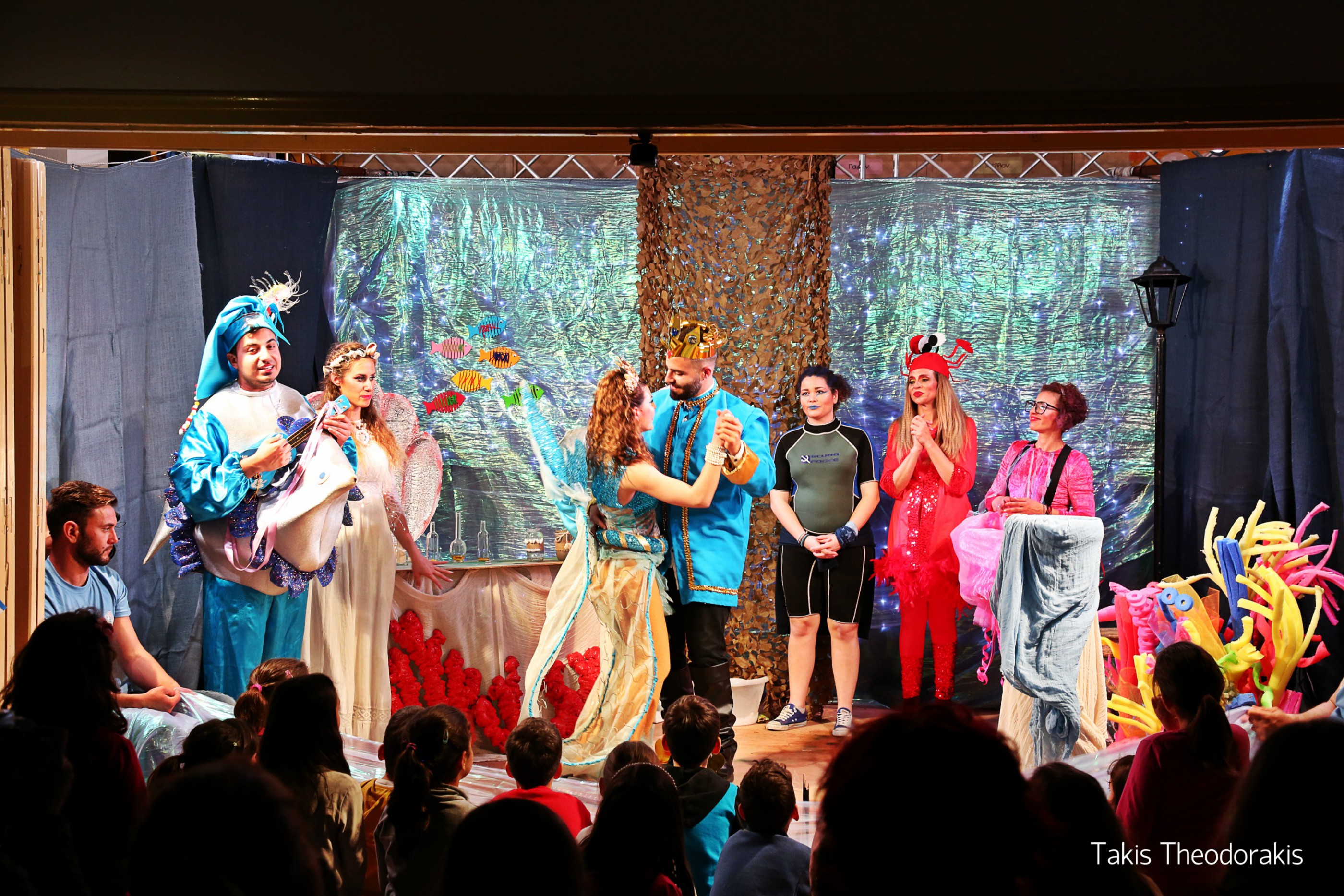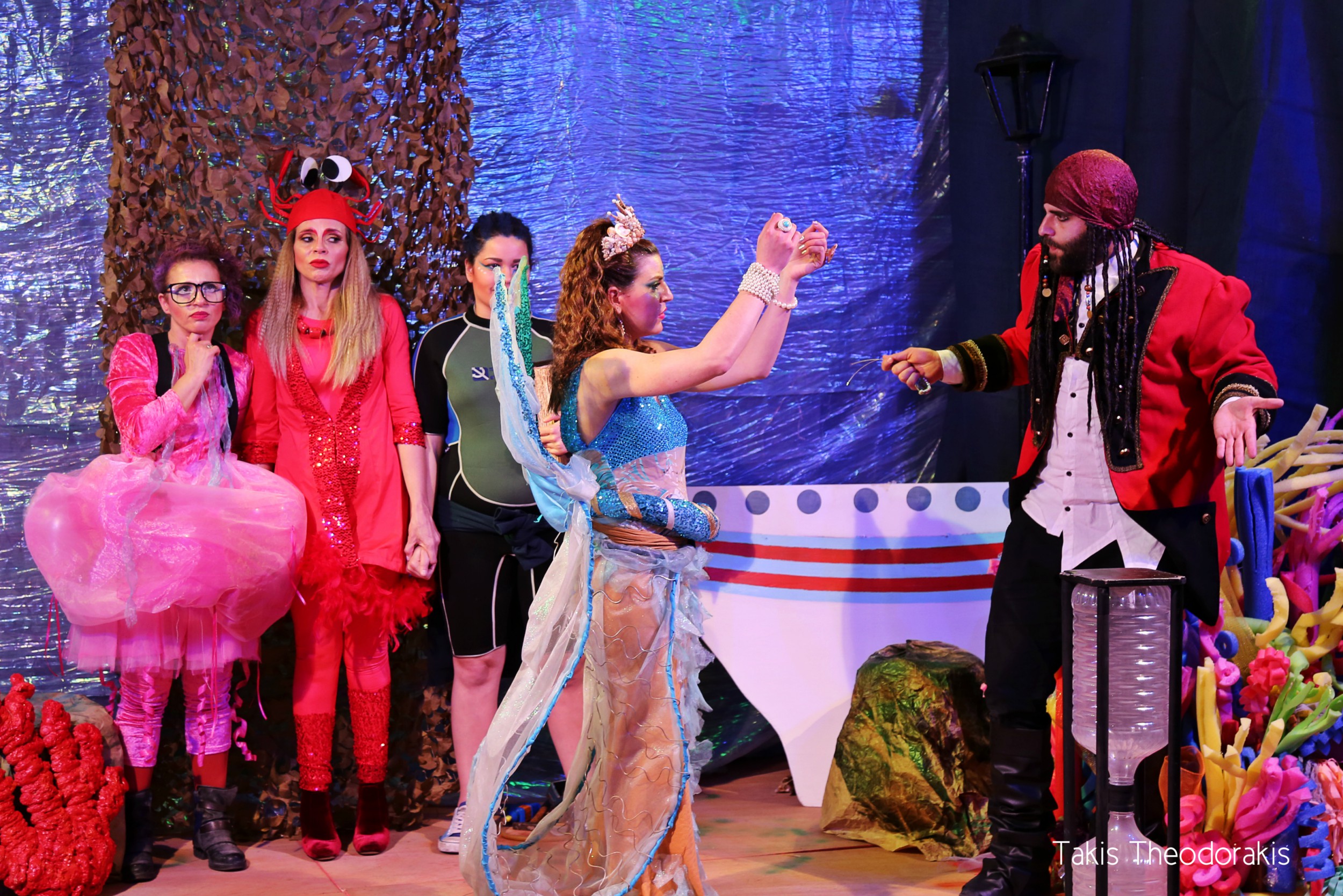 Παράλληλα, στο σχολείο, ήδη από τις 09:00 είχε ξεκινήσει το στήσιμο των σκηνικών της παράστασης του θεατρικού δρώμενου με τίτλο “Γύρνα την Κλεψύδρα“ από την ομάδα σκηνικών του Ομίλου. Η θεατρική παράσταση που είχε προετοιμαστεί από τη θεατρική ομάδα του ΟΦΤΣΣ, με συντονίστρια την κυρία Γεωργία Ματσούκα από τη Εν.Το.Πο Σύρο, ήταν προγραμματισμένη το ίδιο απόγευμα στις 20:00. Η ομάδα σκηνικών δούλεψε αρκετές ώρες, δημιουργώντας ένα εντυπωσιακό αποτέλεσμα.
