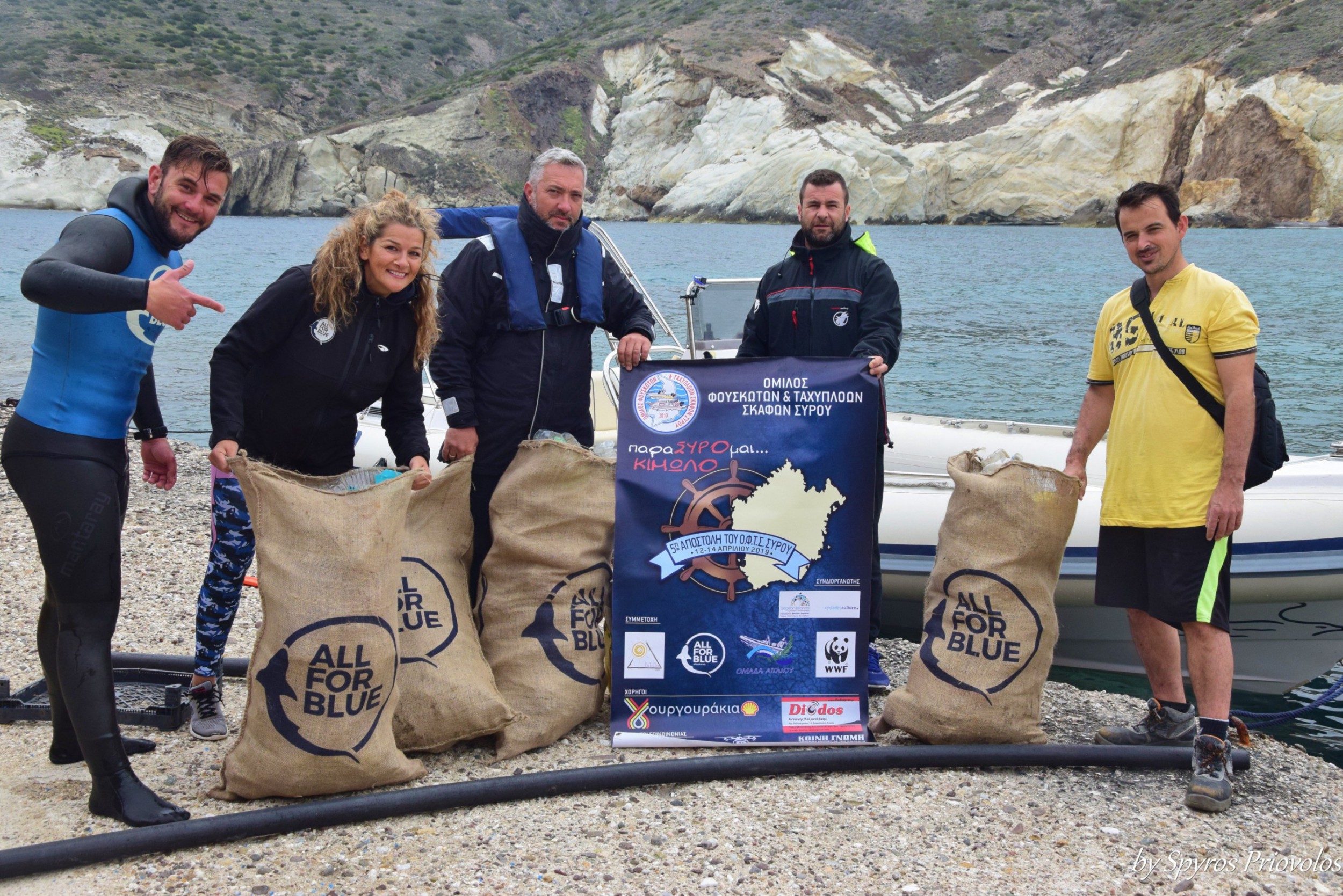 Ο Όμιλος Φουσκωτών και Ταχυπλόων Σκαφών Σύρου πραγματοποίησε την 5η του Αποστολή με τίτλο: «ΠαραΣΥΡΟμαι...ΚΙΜΩΛΟ», στο μικρό νησί των Κυκλάδων, το τριήμερο 12 με 14 Απριλίου 2019. Το βροχερό πρωινό της Παρασκευής, στις 7:00 το πρωί, οι συμμετέχοντες της αποστολής συναντήθηκαν στη μαρίνα στα Λαζαρέτα, από όπου περίπου στις 08:00, τρεις βάρκες του Ομίλου και δύο της Ομάδας Αιγαίου απέπλευσαν για τον προορισμό τους. Ένας νότιος άνεμος συνόδευσε όλη την πλεύση μας, ωστόσο χωρίς προβλήματα, γύρω στις 11:00, οι βάρκες και τα πληρώματα έδεσαν στο λιμάνι της Ψάθης Κιμώλου. Εκεί έγινε η παράδοση των ενοικιαζόμενων οχημάτων που είχε φροντίσει να προμηθευτεί ο Όμιλος για να καλύψει τη μεταφορά των μελών, κατά τη διαμονή τους στην Κίμωλο.
