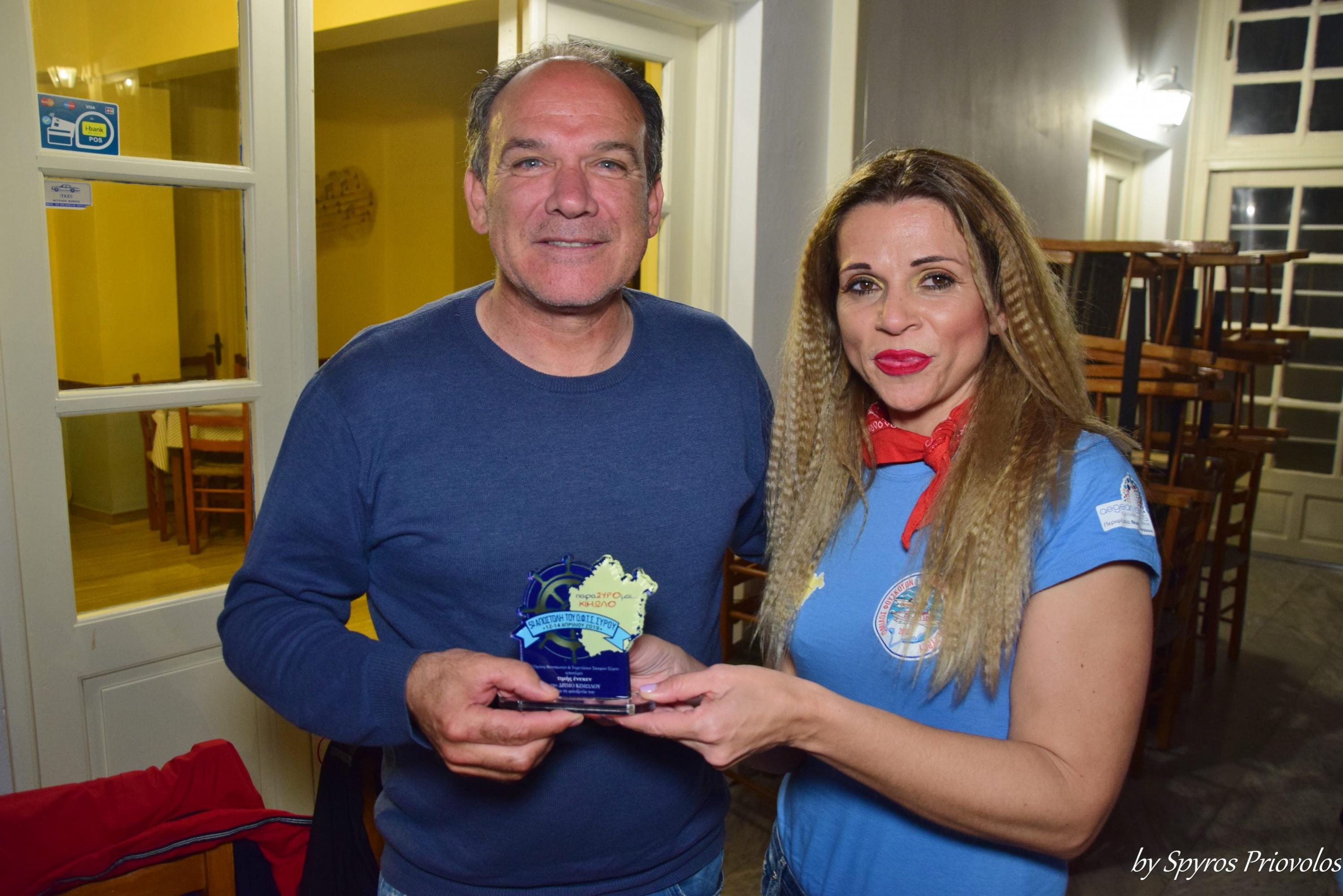 Το βράδυ της ίδιας ημέρας ο Δήμος Κιμώλου μας προσέφερε δείπνο στο εστιατόριο Πανόραμα , ευχαριστώντας μας για τις δράσεις μας στο νησί ενώ ο Όμιλός μας πρόσφερε στο Δήμαρχο αναμνηστικό από την αποστολή του στο νησί. Το βράδυ μας έκλεισε μουσικά, με κιθάρες και τραγούδια από μέλη του Ομίλου μας.