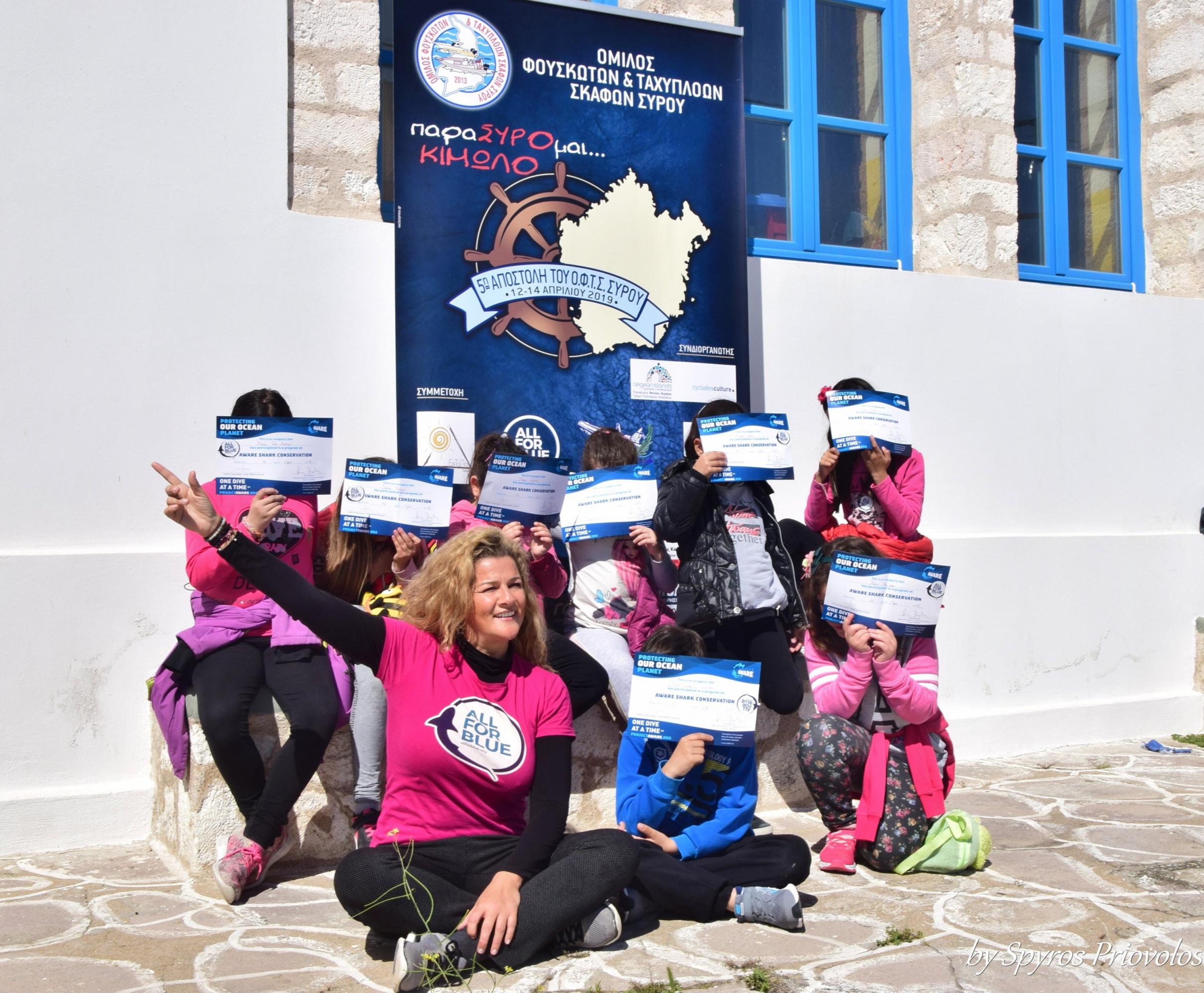 Ωστόσο ,οι δράσεις του Ομίλου στην Κίμωλο, ολοκληρώθηκαν την Κυριακή, στις 09:30, με την παρουσίαση του σεμιναρίου της All for blue, από την κυρία Κατερίνα Τοπούζογλου, η οποία για δεύτερη χρονιά ακολούθησε την αποστολή μας. Ο οργανισμός All for blue επικεντρώνεται στην προστασία των θαλασσών και ιδιαίτερα των καρχαριών μέσω ενημερωτικών σεμιναρίων ενώ μετά το σεμινάριο για μια ακόμα φορά τα παιδιά μεταφέρθηκαν με λεωφορείο, στην παραλία της Ψάθης όπου έγινε παράκτιος και υποβρύχιος καθαρισμός.