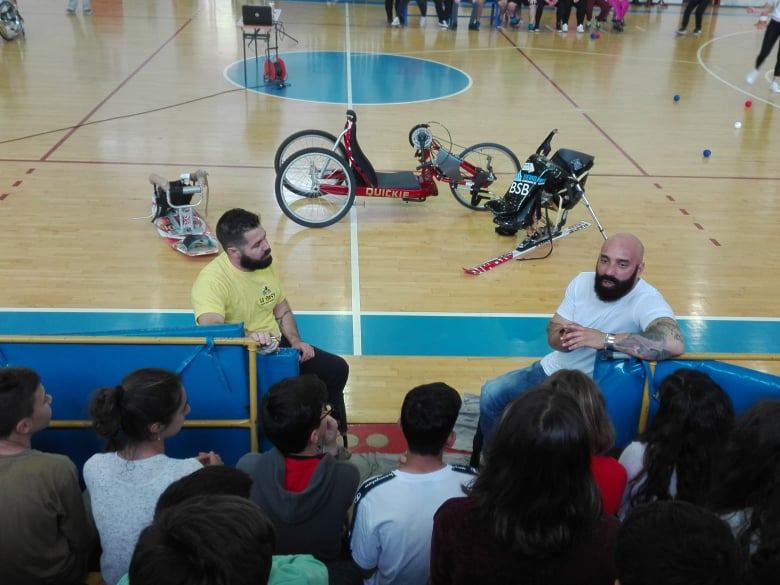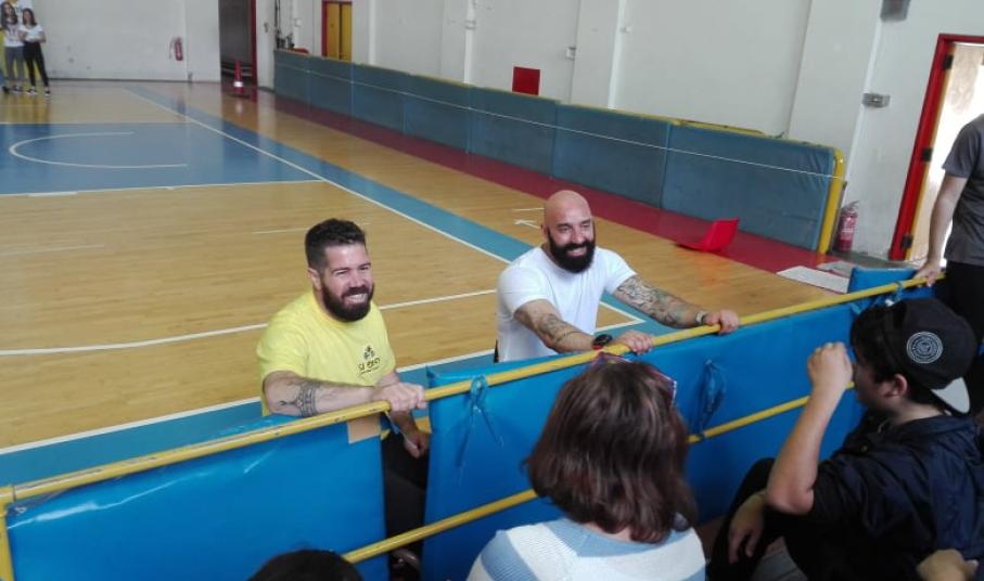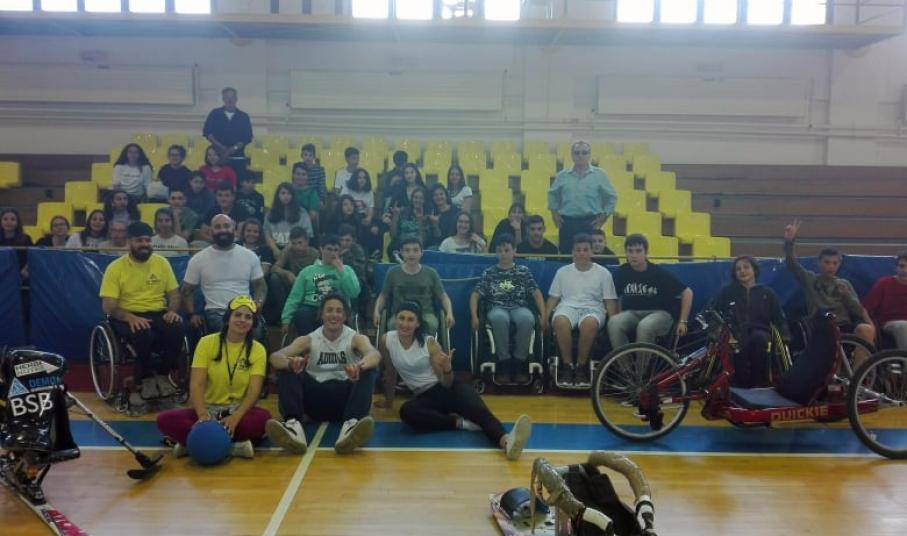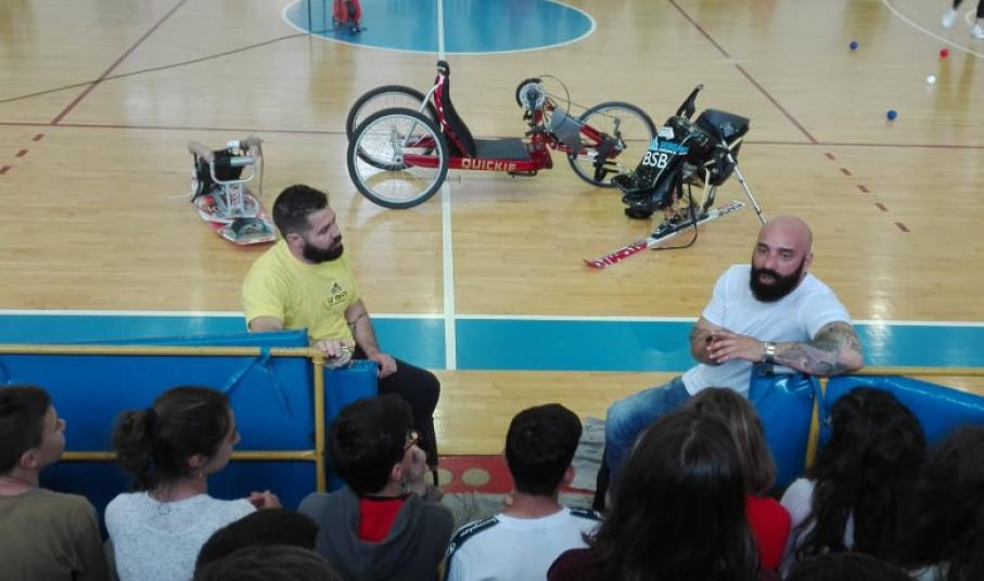 Ο παραολυμπιονίκης Μάκης Καλαράς και ο Νίκος Ρούσσος υποδέχονται από χθες το πρωί τους μαθητές του νησιού στο Κλειστό Γυμναστήριο «Δημήτριος Βικέλας» για να πουν μαζί «ΟΧΙ στον κοινωνικό αποκλεισμό, ΝΑΙ στο δικαίωμα στη ζωή», αλλά και να τους παρουσιάσουν αθλήματα των παραολυμπιακών αγώνων.