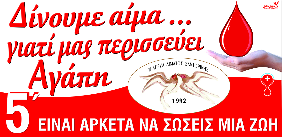 Πρόσκληση συμμετοχής στην 55η εθελοντική αιμοδοσία στη Θήρα
