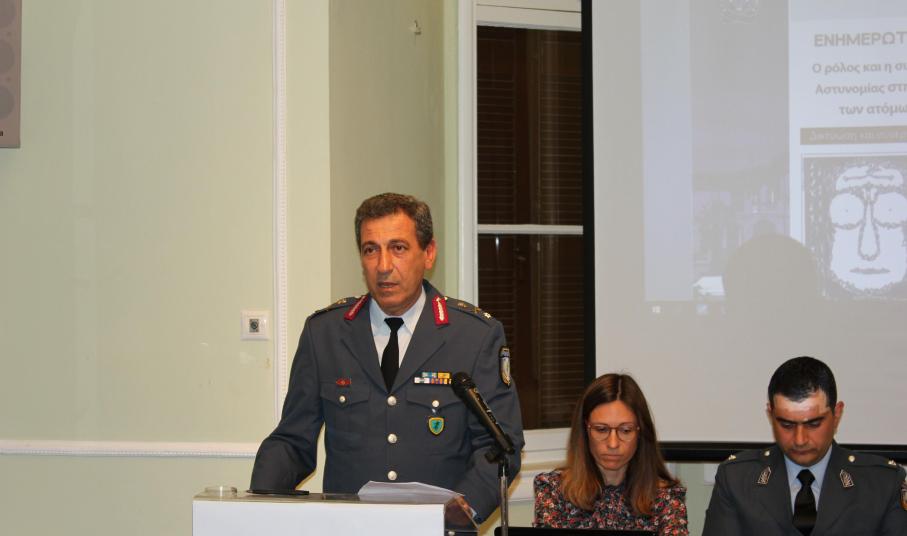 Τέλος, η Αστυνόμος Β’ Ζωή Κουβάτσου, Ψυχολόγος, Διδάκτωρ Ψυχολογίας και Αξιωματικός Ειδικών Καθηκόντων της Γενικής Περιφερειακής Αστυνομικής Διεύθυνσης Νοτίου Αιγαίου ανέπτυξε το θέμα «συνεργασία συναρμόδιων φορέων για την προστασία των δικαιωμάτων των Ατόμων με Αναπηρία».