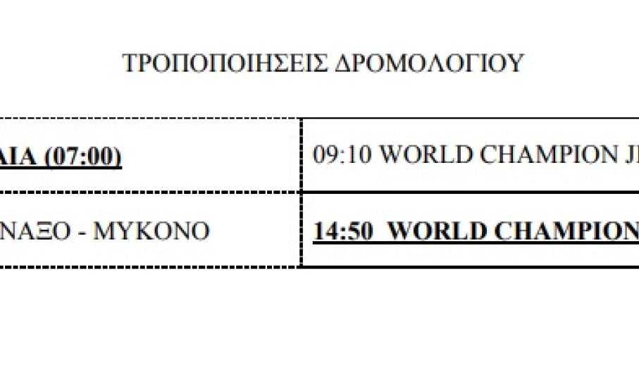 Τροποποιήσεις δρομολογίων World Champion Jet Τετάρτη 29 Μαΐου 2019 - 12:46 Διαφήμιση Από σήμερα 29-05-2019 τα δρομολόγια του Ε/Γ - Ο/Γ - Τ/Χ WORLD CHAMPION JET τροποποιούνται σύμφωνα με συνημμένο πίνακα: Διαφήμιση #Κοινωνία #World Champion Jet #τροποποιήσεις δρομολογίων