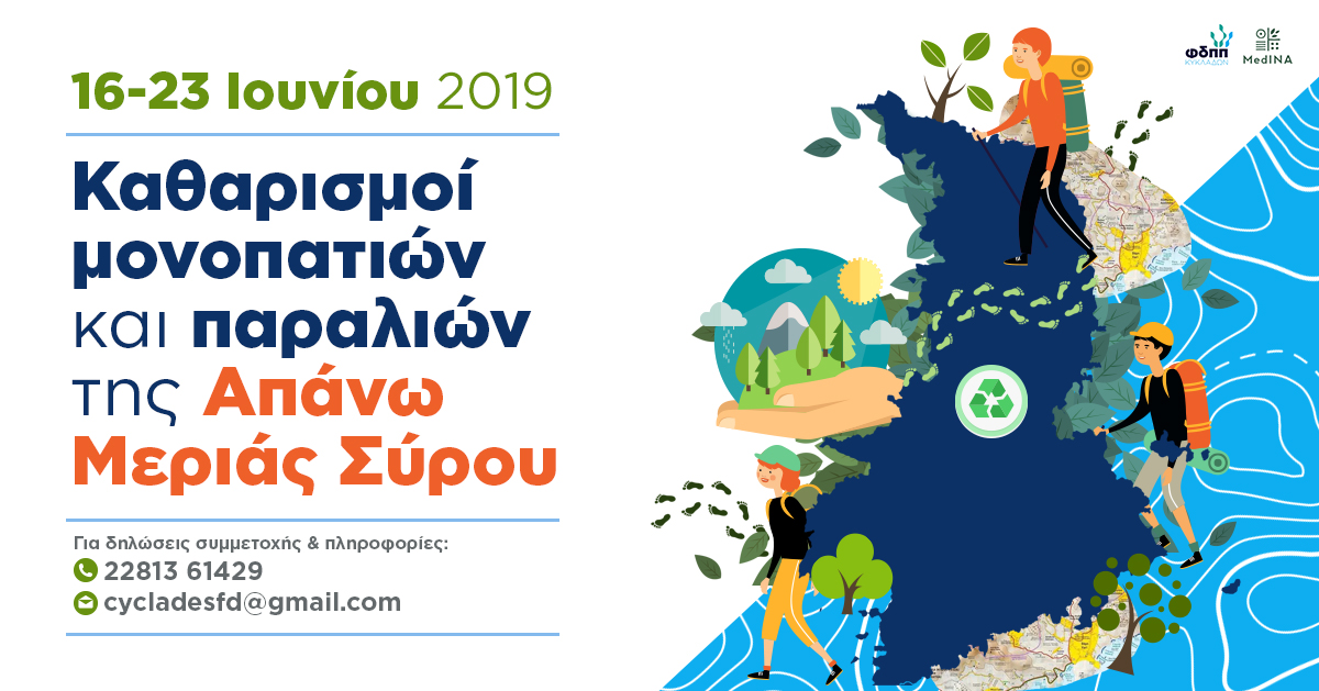 Ο Φορέας Διαχείρισης Προστατευόμενων Περιοχών Κυκλάδων [ΦΔΠΠΚ], σε συνεργασία με το Μεσογειακό Ινστιτούτο για τη Φύση και τον Άνθρωπο [MedINA] και τοπικούς φορείς της Σύρου, διοργανώνουν μια σειρά δράσεων συντήρησης, καθαρισμού μονοπατιών και καθαρισμού παραλιών/ακτών από τις 15 έως τις 23 Ιουνίου 2019.