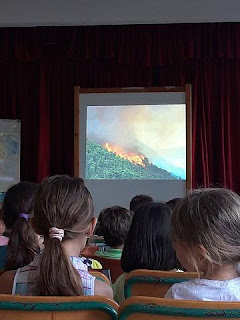 Στην επίσκεψη εκεί παρουσιάσθηκε το κατάλληλα διαμορφωμένο παραμύθι με κινούμενα σχέδια για τις δασικές πυρκαγιές "ο ήρωας του δάσους", του Κέντρου Περιβαλλοντικής Εκπαίδευσης Κορθίου (ΚΠΕ Κορθίου), όπου μέσα από την αλληλεπίδραση των ρόλων προκύπτουν οι αιτίες πυρκαγιών και οι επιπτώσεις στο περιβάλλον. Ακόμη με παιγνιώδη τρόπο παρουσιάσθηκε το τρίγωνο της φωτιάς και βασικές αρχές προστασίας, για να ακολουθήσει στο τέλος το παιχνίδι "κατάσβεση της πυρκαγιάς" από τους μελλοντικούς εθελοντές.