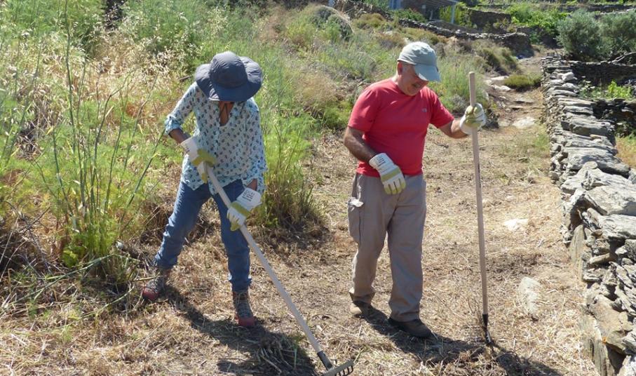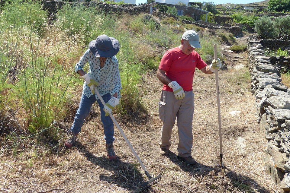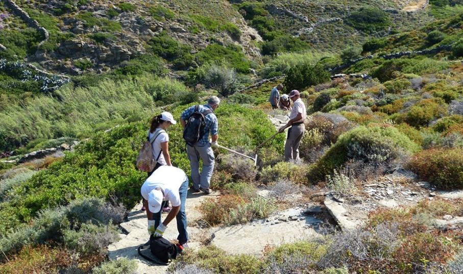 Πρώτο σταθμό των ντόπιων εθελοντών και τοπικών φορέων - ομάδων της Σύρου αποτέλεσε το περασμένο Σάββατο το μονοπάτι από το Παπούρι στον Αετό και τη Βαρβαρούσα. Ειδικότερα, έγινε αναβίωση του παλαιού, εγκαταλελειμμένου τμήματος του μονοπατιού που ξεκινάει εντός του οικισμού του Παπουρίου και φτάνει έως το σημείο έναρξης της κύριας διαδρομής της δράσης. Λόγω της πυκνής βλάστησης στο τμήμα αυτό, χρησιμοποιήθηκε εξιδεικευμένο προσωπικό. Ωστόσο, οι εθελοντές που είχαν δηλώσει διαθεσιμότητα είχαν τη δυνατότητα να συμβάλουν σε κλαδέματα και καθαρισμούς κατά μήκος της ίδιας διαδρομής.