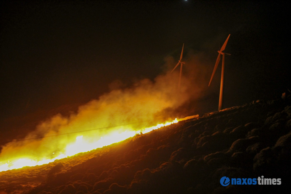 Ευτυχώς, από την πυρκαγιά, ούτε κατοικίες, ούτε ανθρώπινες ζωές, αλλά ούτε και οι ανεμογεννήτριες του αιολικού πάρκου, δεν τέθηκαν σε κίνδυνο.
