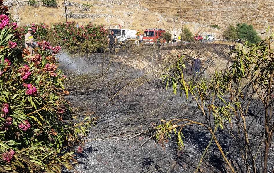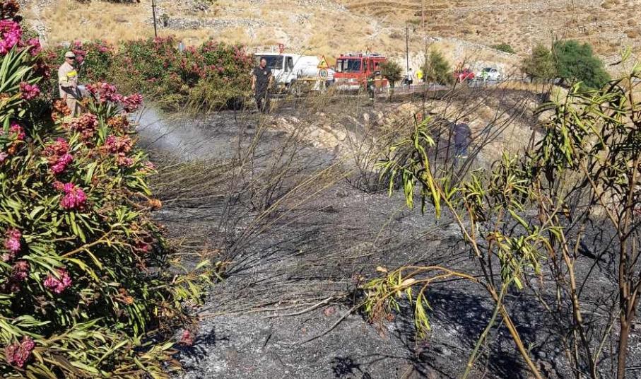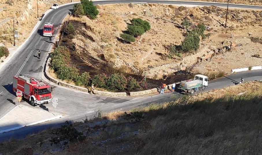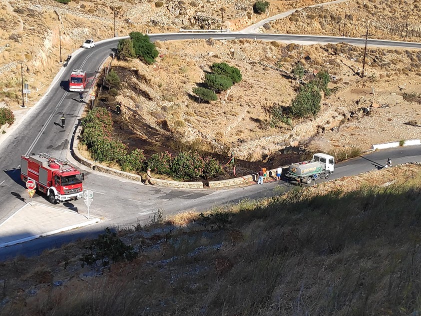 Η φωτιά ξέσπασε στο πρανές τμήμα στη δεξιά πλευρά του δρόμου και κατέληξε σε μικρή ρεματιά, κατακαίοντας χαμηλή βλάστηση.