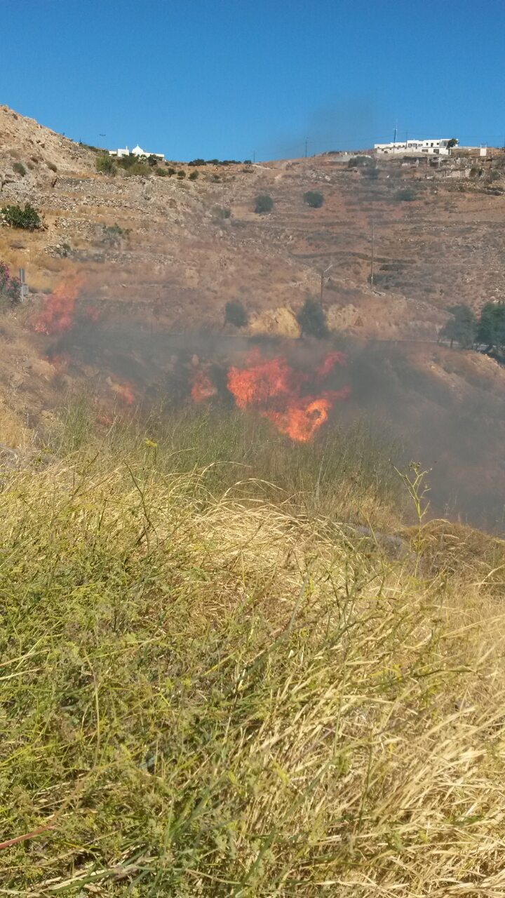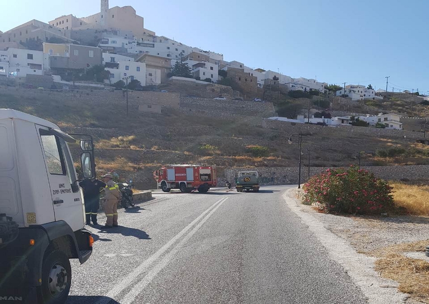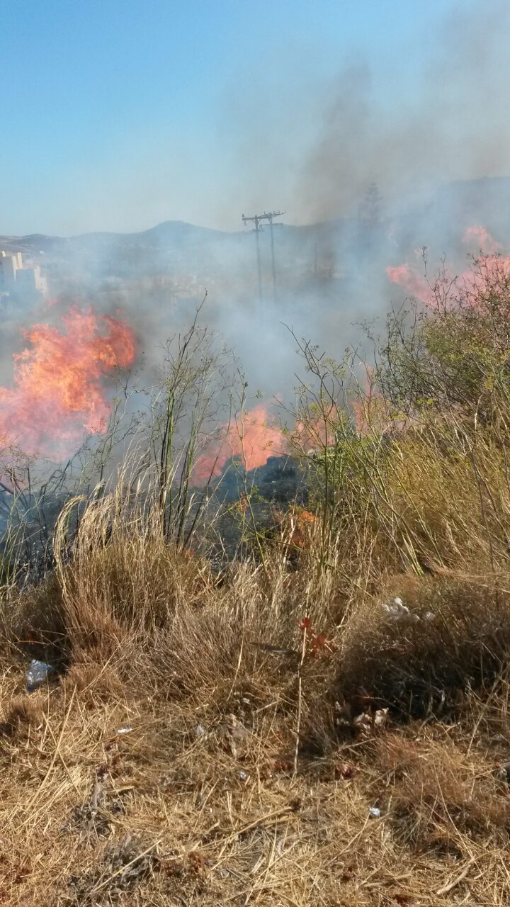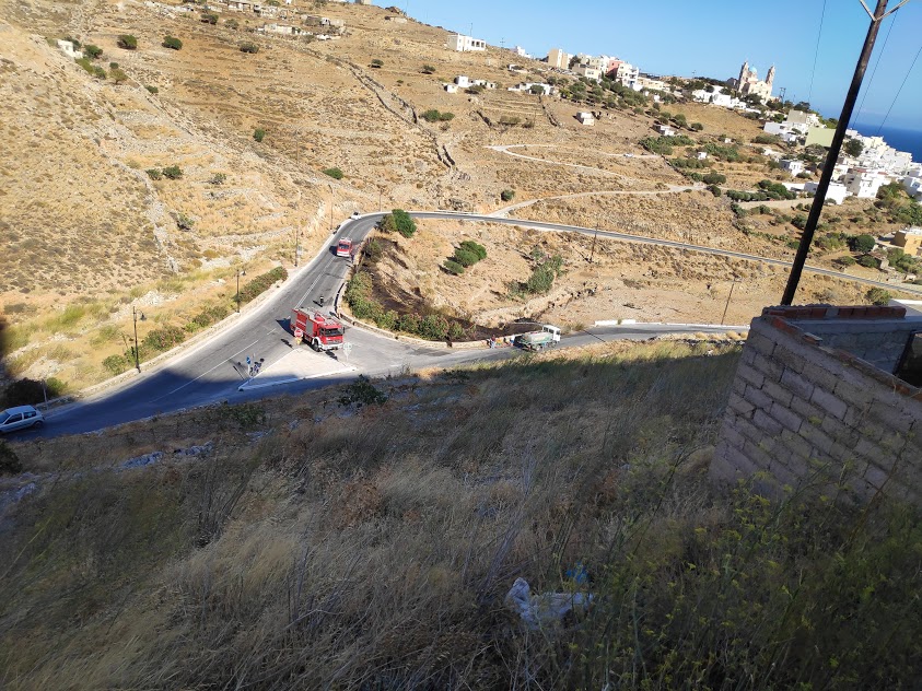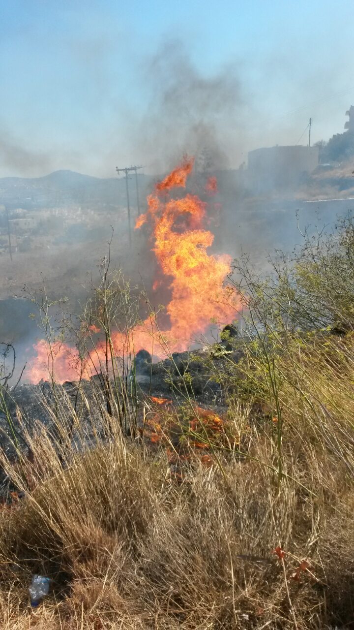 Πυρκαγιά ξέσπασε γύρω στις 3 το μεσημέρι στον δρόμο της Λαλακιάς προς την Άνω Σύρο, κοντά σε κατοικημένη περιοχή.