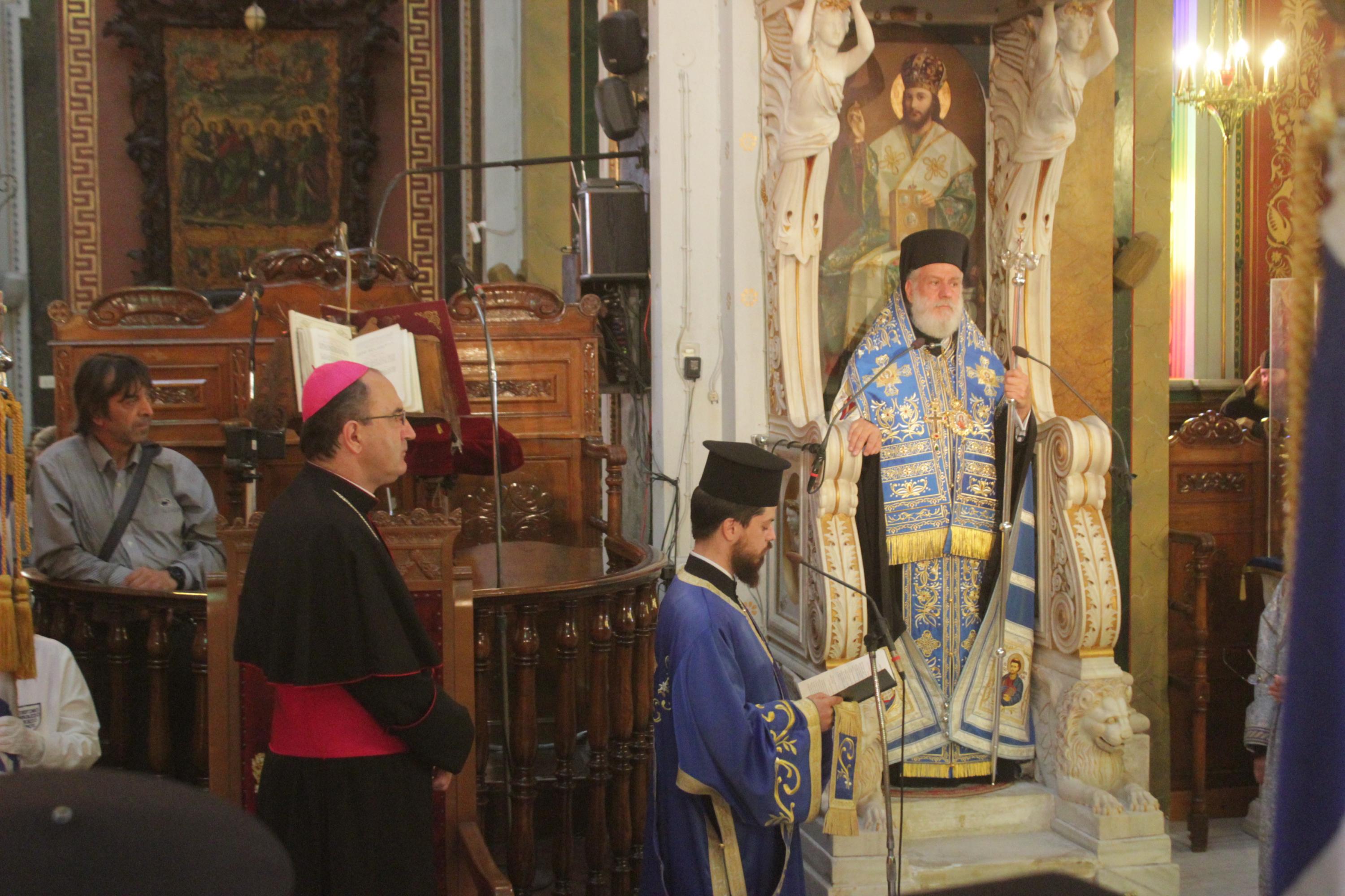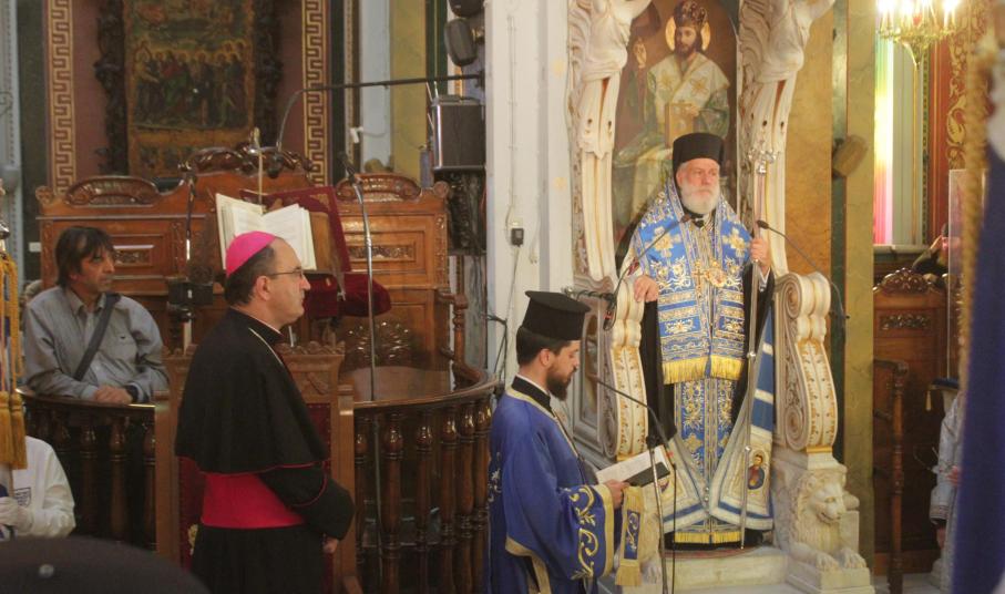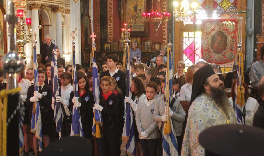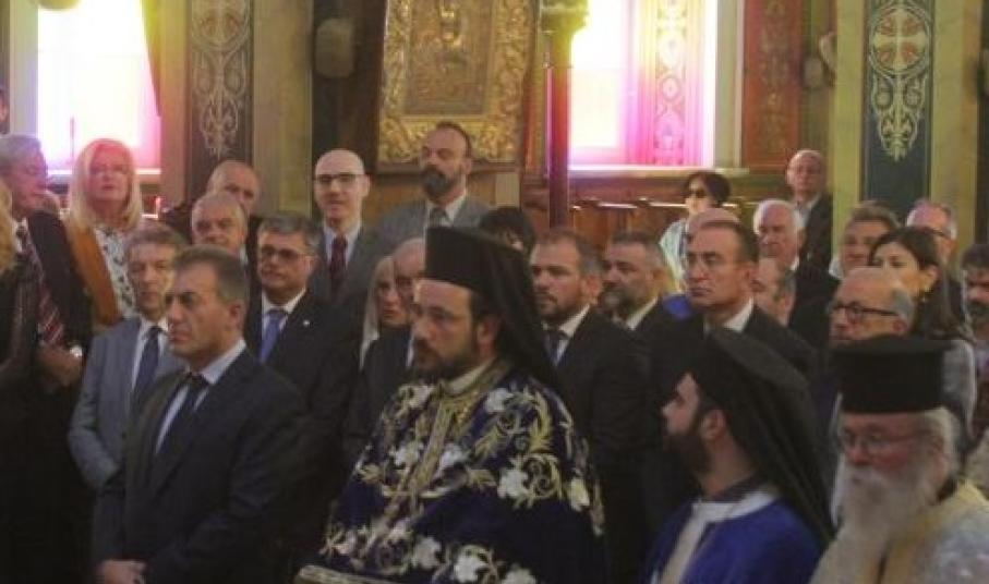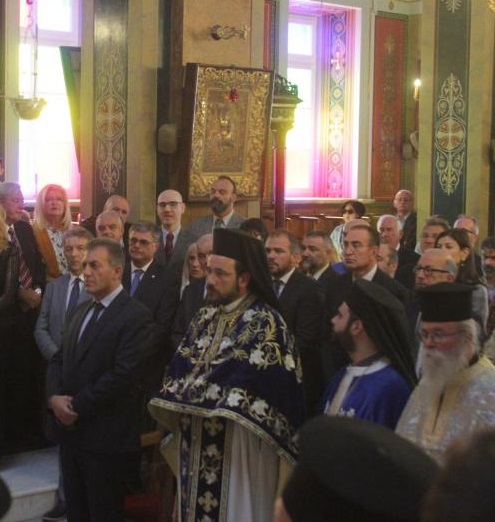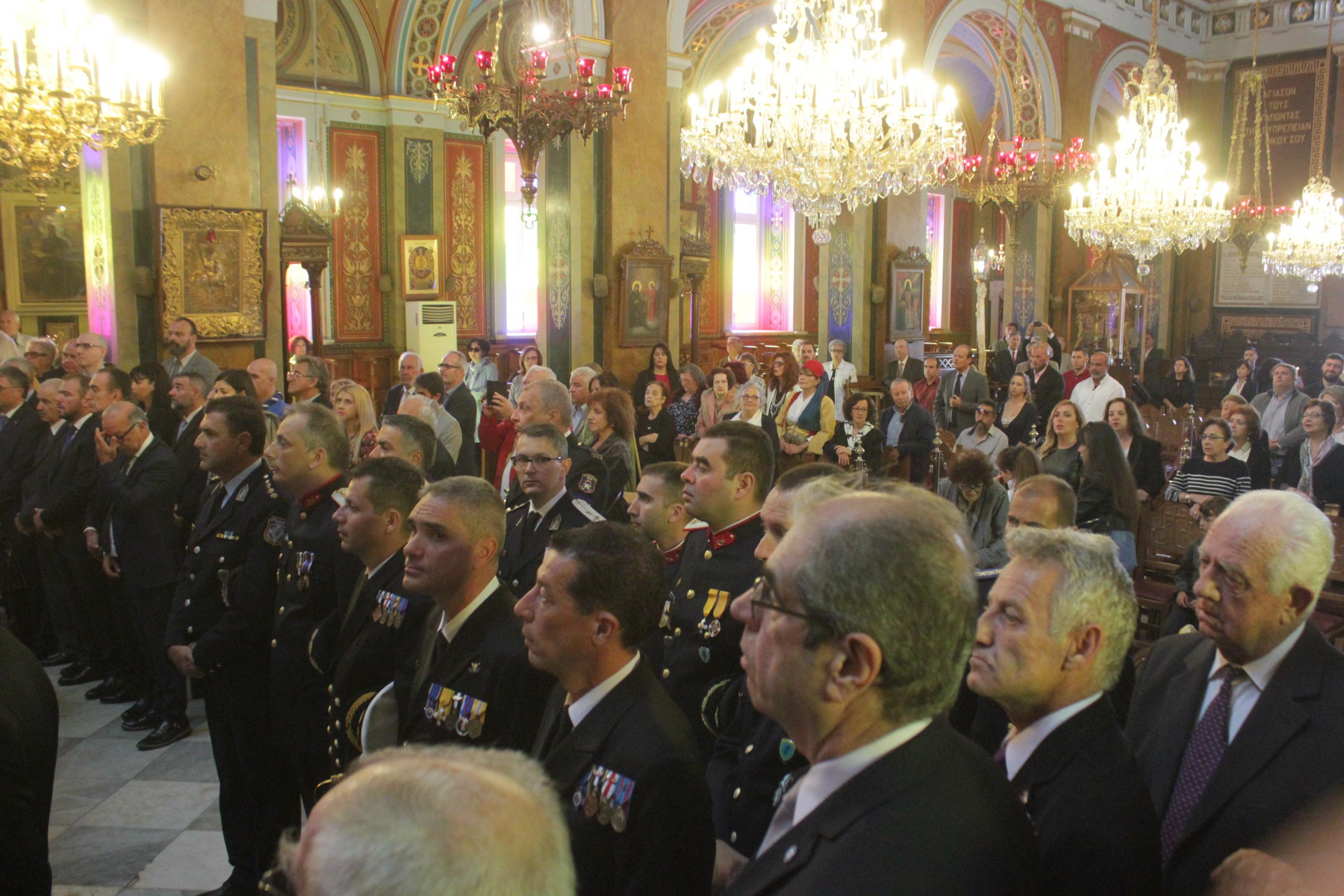 Στο πλαίσιο των εορταστικών εκδηλώσεων, οι οποίες ξεκίνησαν την περασμένη Παρασκευή με επιμνημόσυνη δέηση στο Κοιμητήριο του Ιερού Ναού Αγίου Γεωργίου και κατάθεση στεφάνων στα ηρώα της Ερμούπολης, τελέστηκε σήμερα το πρωί Επίσημη Δοξολογία στον Ιερό Ναό του Αγίου Νικολάου, χοροστατούντος του Σεβασμιωτάτου Μητροπολίτη Σύρου κ. Δωροθέου Β’ και παρουσία του Καθολικού Επισκόπου Σύρου Σεβ. π. Πέτρου Στεφάνου, του υπουργού Εργασίας Γιάννη Βρούτση, του Βουλευτή Κυκλάδων Φίλιππου Φόρτωμα και εκπροσώπων της τοπικής αυτοδιοίκησης, φορέων και συλλόγων.