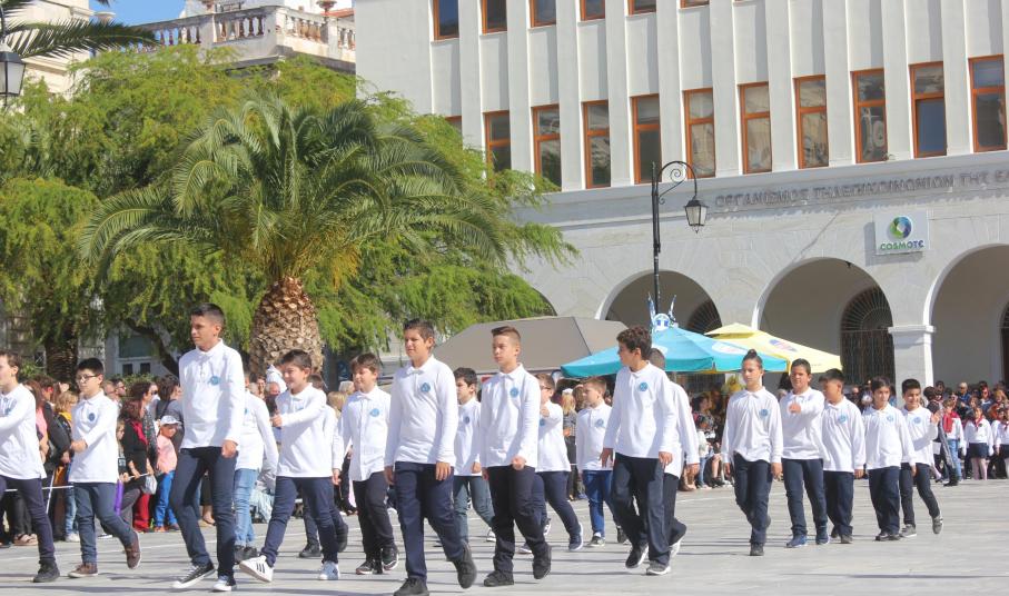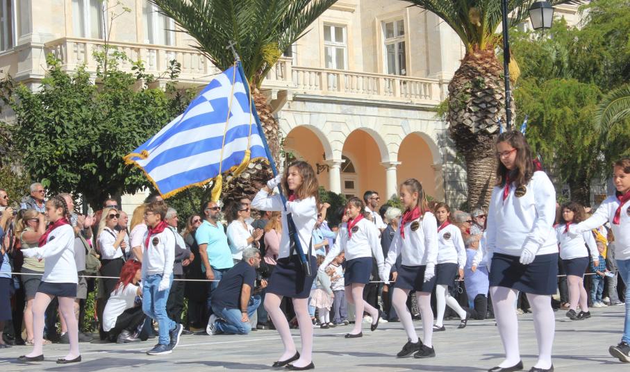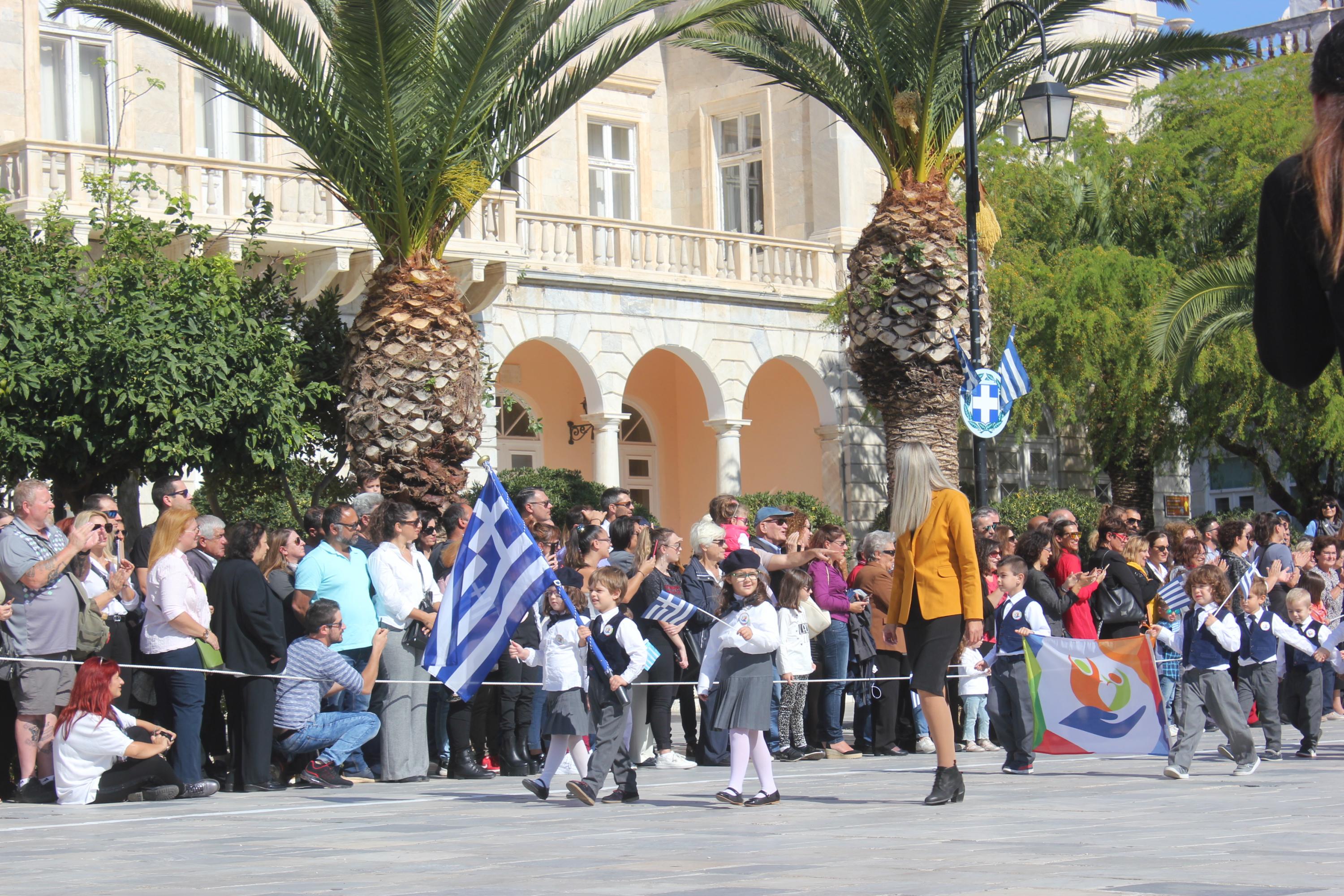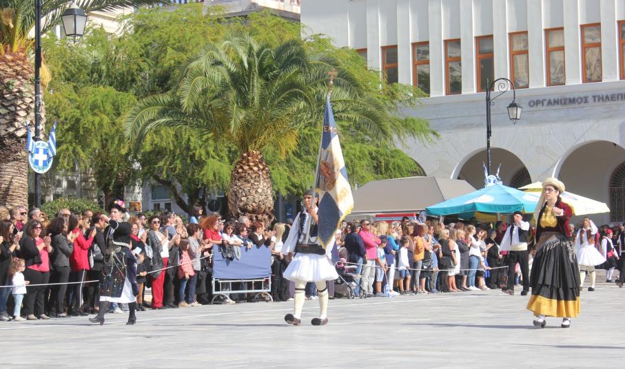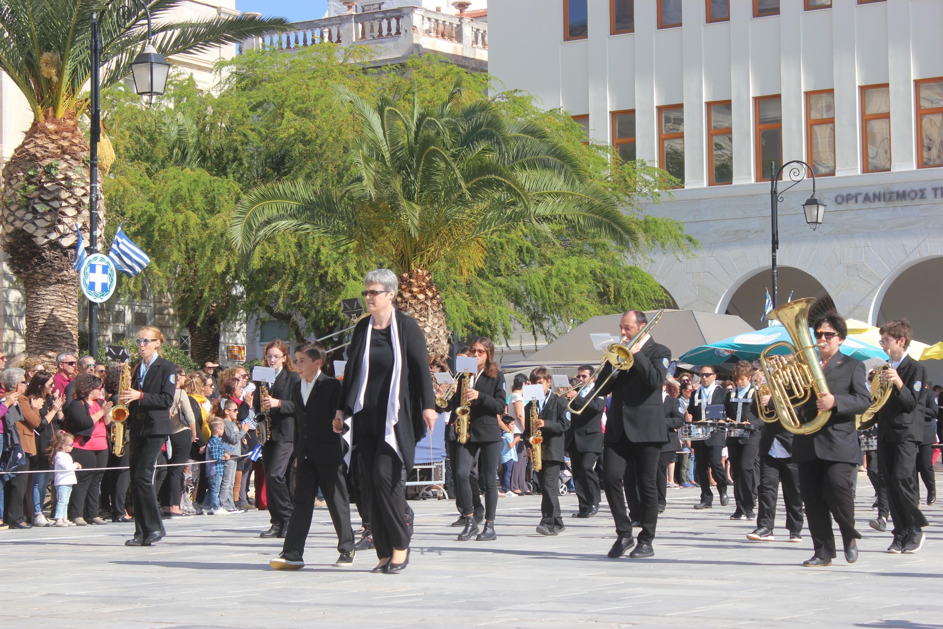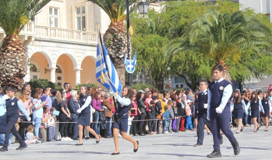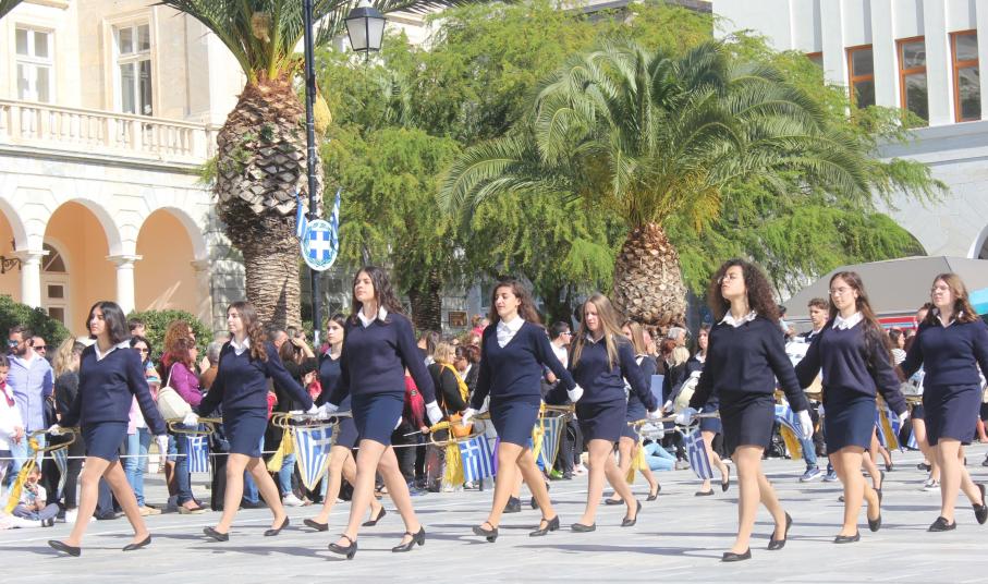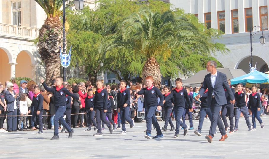 Οι εκδηλώσεις ολοκληρώθηκαν με την καθιερωμένη μαθητική παρέλαση στην πλατεία Μιαούλη. Επικεφαλής της παρέλασης ήταν και φέτος η Φιλαρμονική Δήμου Σύρου – Ερμούπολης, ενώ συμμετείχαν επίσης το Λύκειο Ελληνίδων Σύρου, ο Σύλλογος Μικρασιατών Ερμούπολης Σύρου, ο Σύλλογος Ποντίων και Βορειοελλαδιτών Σύρου «Ο ΕΥΞΕΙΝΟΣ ΠΟΝΤΟΣ», ο Ναυτικός Όμιλος Σύρου, ο Αθλητικός Σύλλογος Tae Kwon Do Ερμούπολης, το Σώμα Ελλήνων Προσκόπων, οι σπουδαστές της Ακαδημίας Εμπορικού Ναυτικού Σύρου και ένοπλο πεζοπόρο τμήμα του Τάγματος Εθνοφυλακής Ερμούπολης.