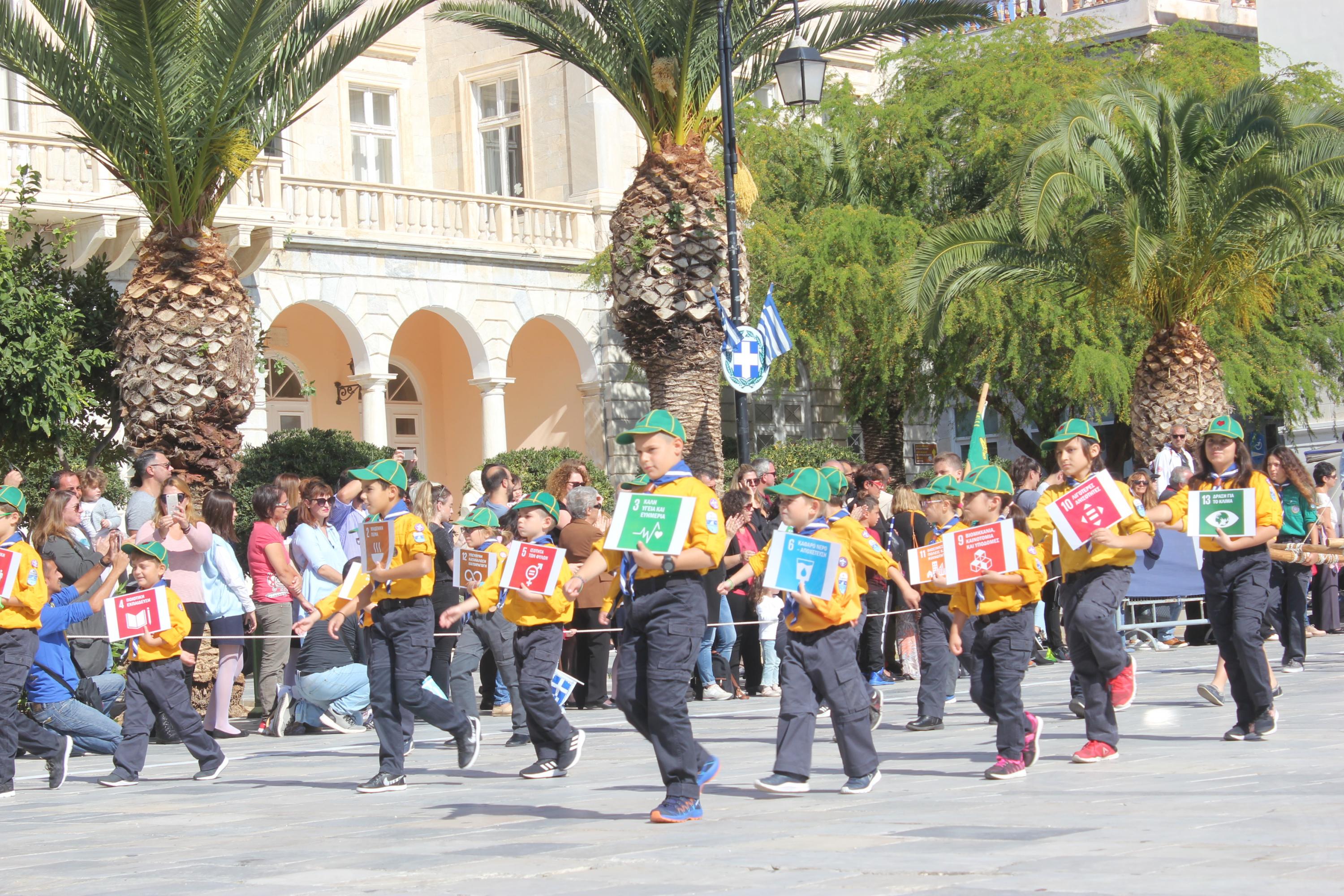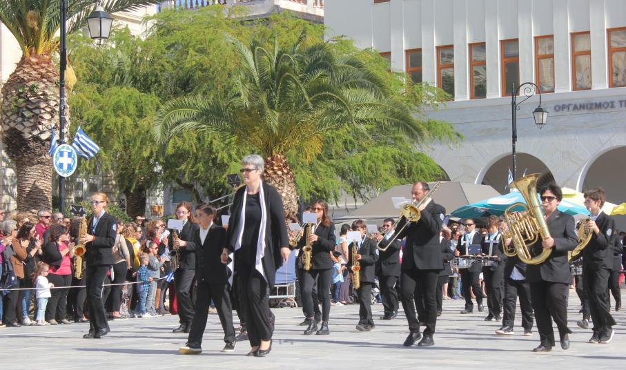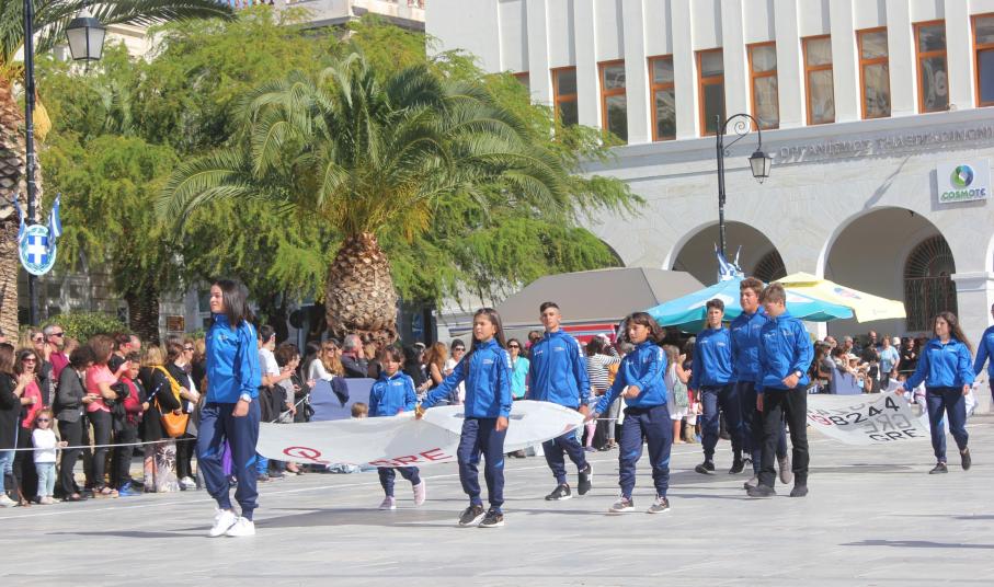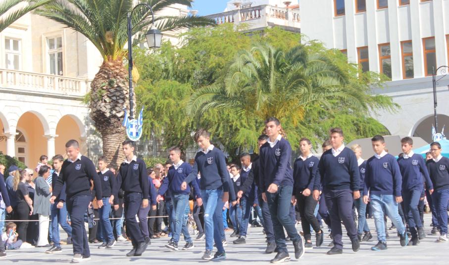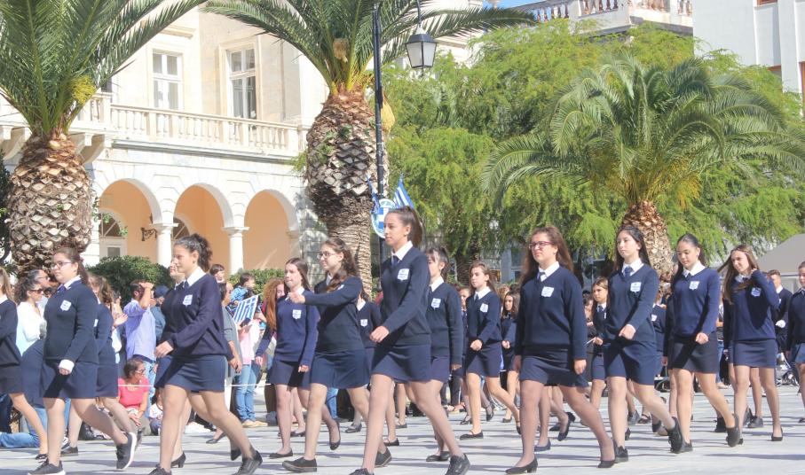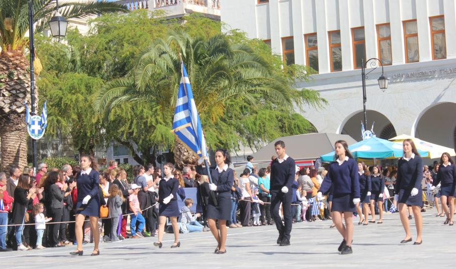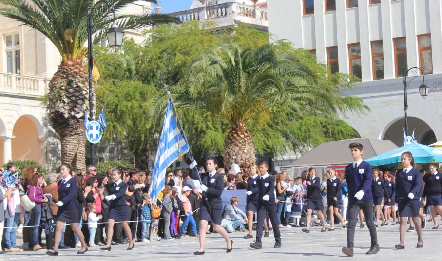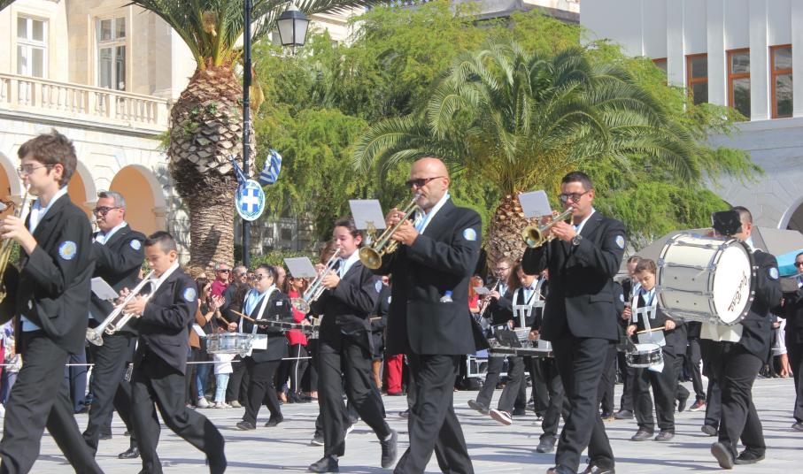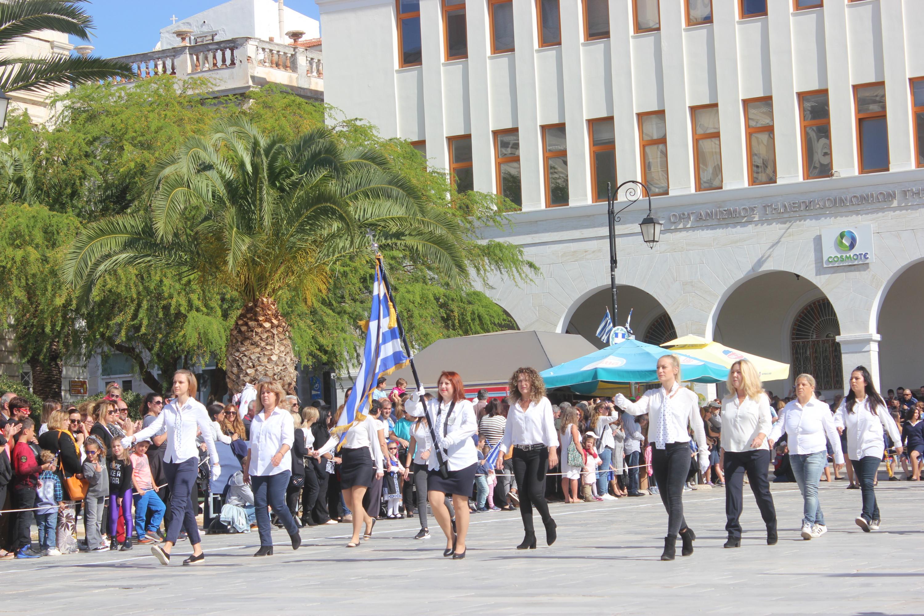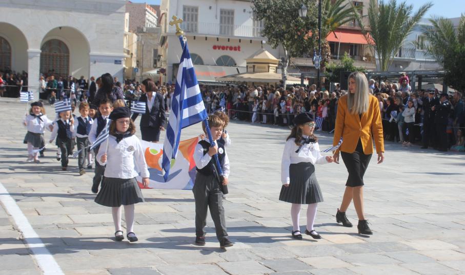 Οι εκδηλώσεις ολοκληρώθηκαν με την καθιερωμένη μαθητική παρέλαση στην πλατεία Μιαούλη. Επικεφαλής της παρέλασης ήταν και φέτος η Φιλαρμονική Δήμου Σύρου – Ερμούπολης, ενώ συμμετείχαν επίσης το Λύκειο Ελληνίδων Σύρου, ο Σύλλογος Μικρασιατών Ερμούπολης Σύρου, ο Σύλλογος Ποντίων και Βορειοελλαδιτών Σύρου «Ο ΕΥΞΕΙΝΟΣ ΠΟΝΤΟΣ», ο Ναυτικός Όμιλος Σύρου, ο Αθλητικός Σύλλογος Tae Kwon Do Ερμούπολης, το Σώμα Ελλήνων Προσκόπων, οι σπουδαστές της Ακαδημίας Εμπορικού Ναυτικού Σύρου και ένοπλο πεζοπόρο τμήμα του Τάγματος Εθνοφυλακής Ερμούπολης.