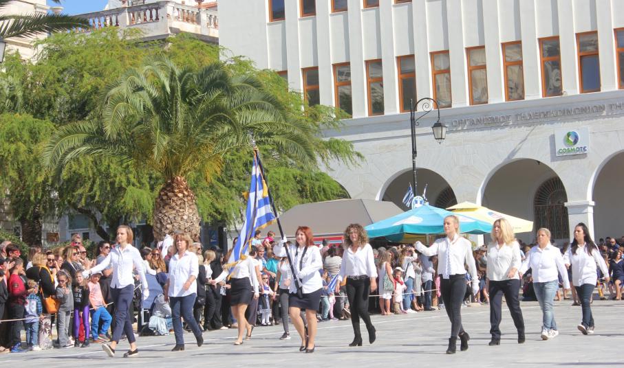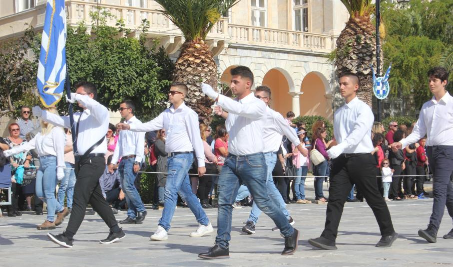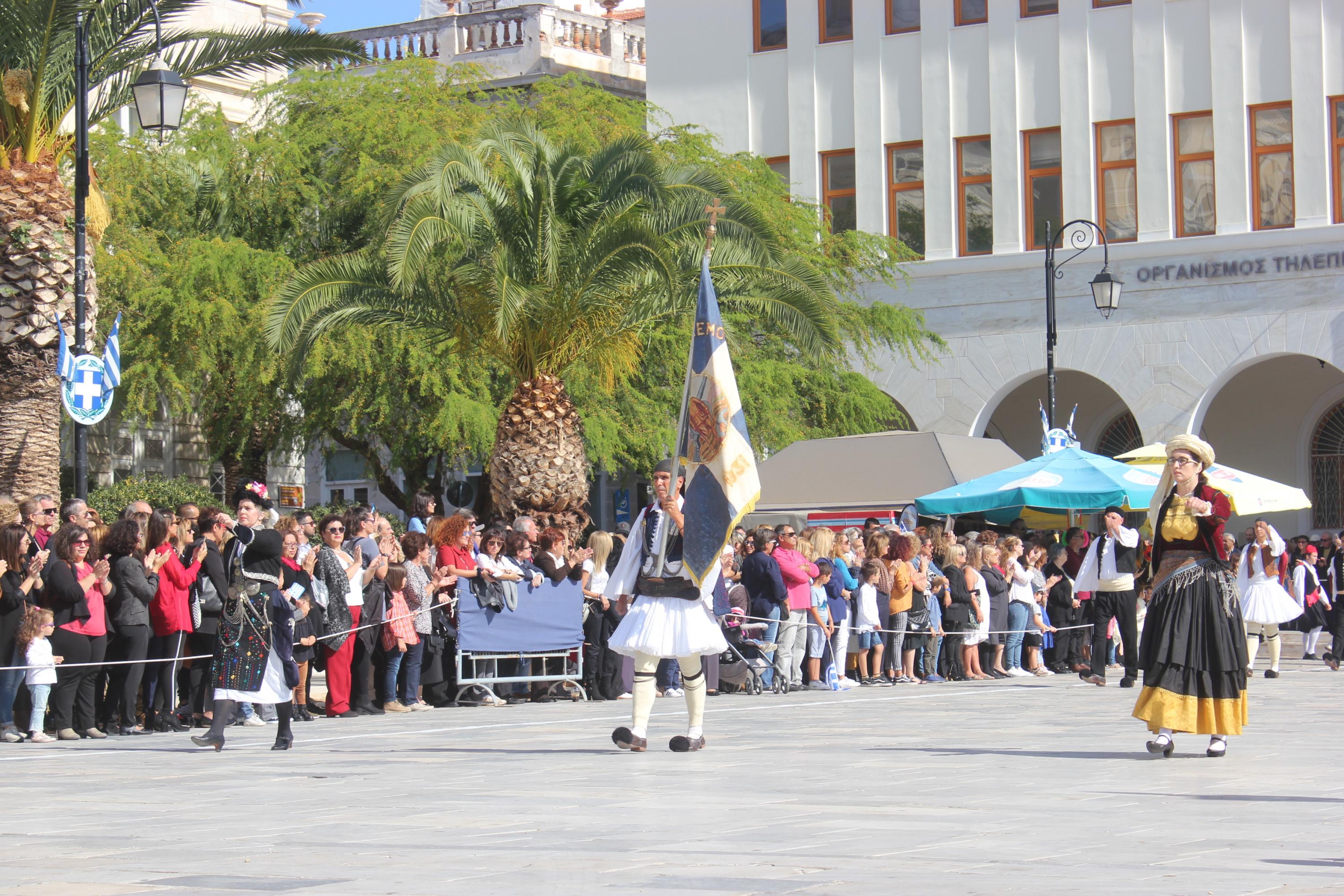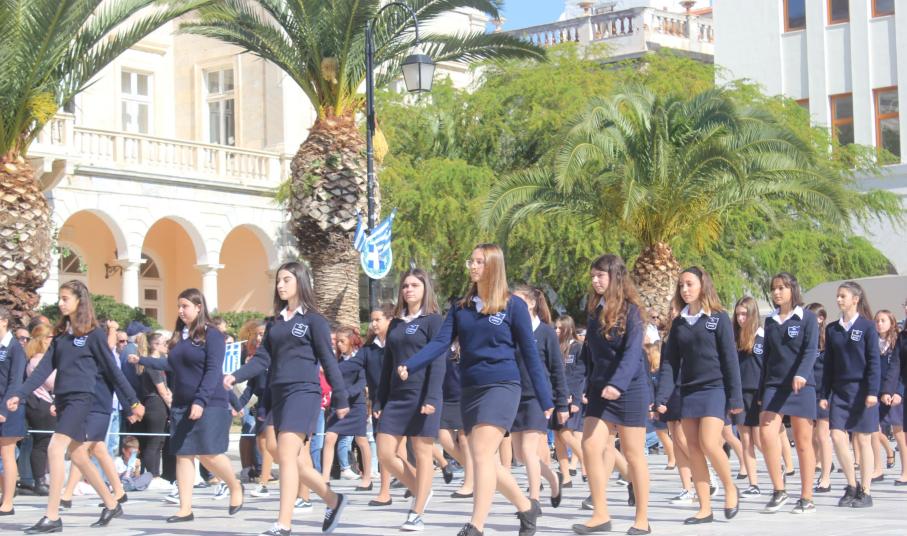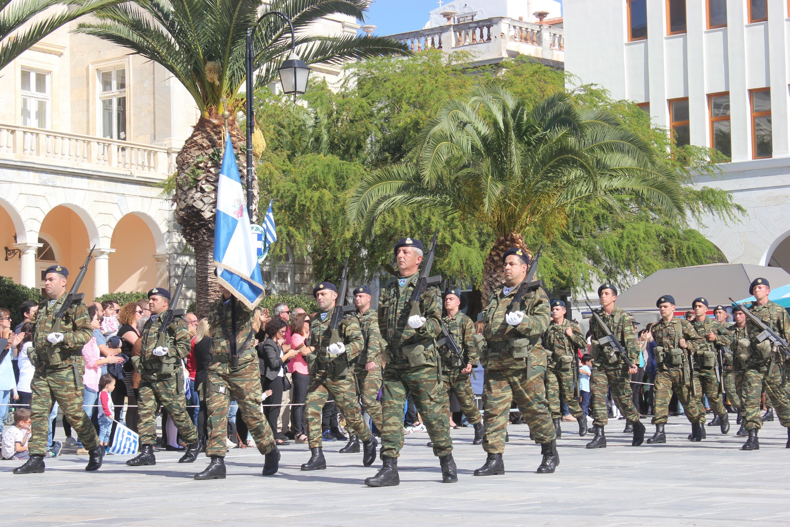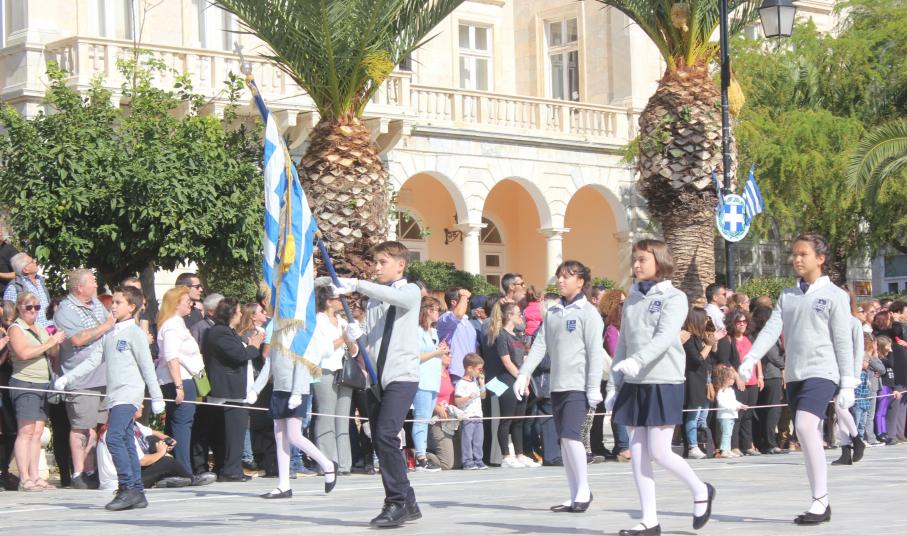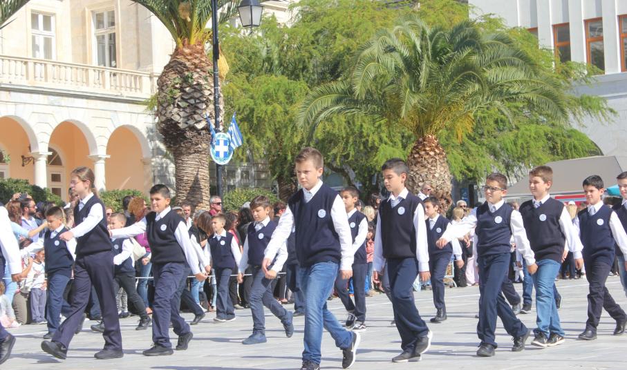 Οι εκδηλώσεις ολοκληρώθηκαν με την καθιερωμένη μαθητική παρέλαση στην πλατεία Μιαούλη. Επικεφαλής της παρέλασης ήταν και φέτος η Φιλαρμονική Δήμου Σύρου – Ερμούπολης, ενώ συμμετείχαν επίσης το Λύκειο Ελληνίδων Σύρου, ο Σύλλογος Μικρασιατών Ερμούπολης Σύρου, ο Σύλλογος Ποντίων και Βορειοελλαδιτών Σύρου «Ο ΕΥΞΕΙΝΟΣ ΠΟΝΤΟΣ», ο Ναυτικός Όμιλος Σύρου, ο Αθλητικός Σύλλογος Tae Kwon Do Ερμούπολης, το Σώμα Ελλήνων Προσκόπων, οι σπουδαστές της Ακαδημίας Εμπορικού Ναυτικού Σύρου και ένοπλο πεζοπόρο τμήμα του Τάγματος Εθνοφυλακής Ερμούπολης.