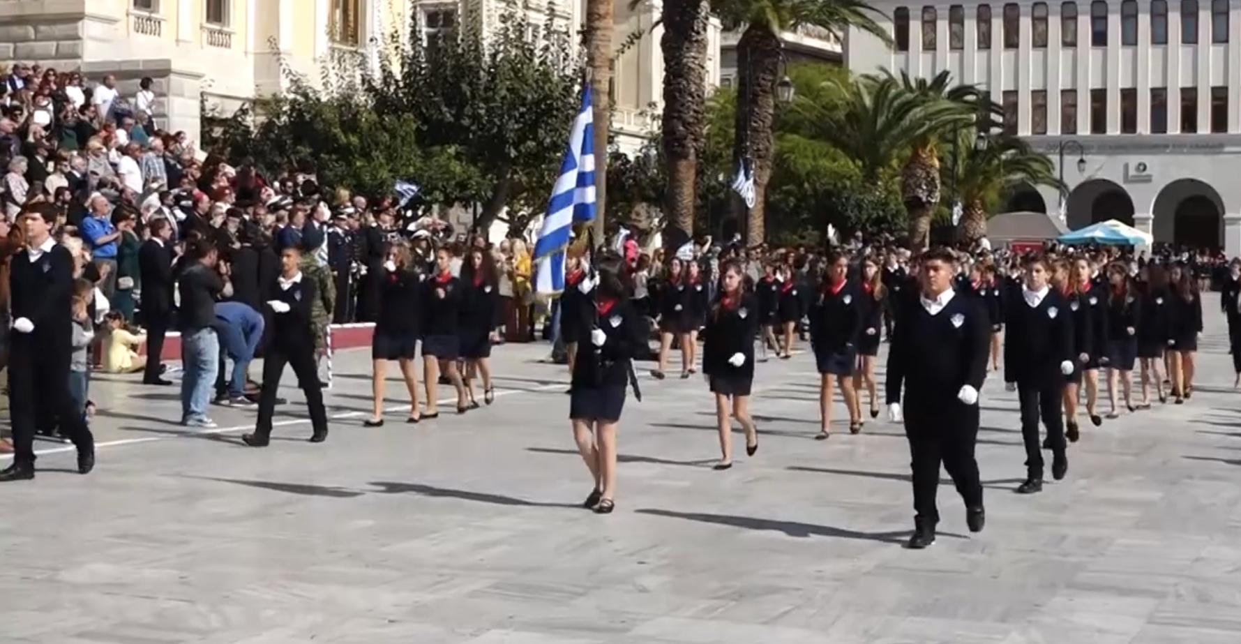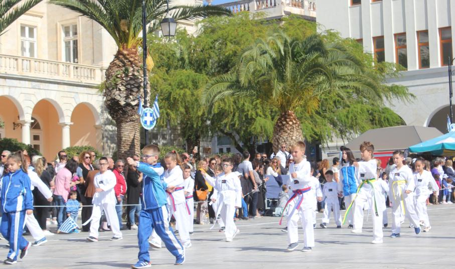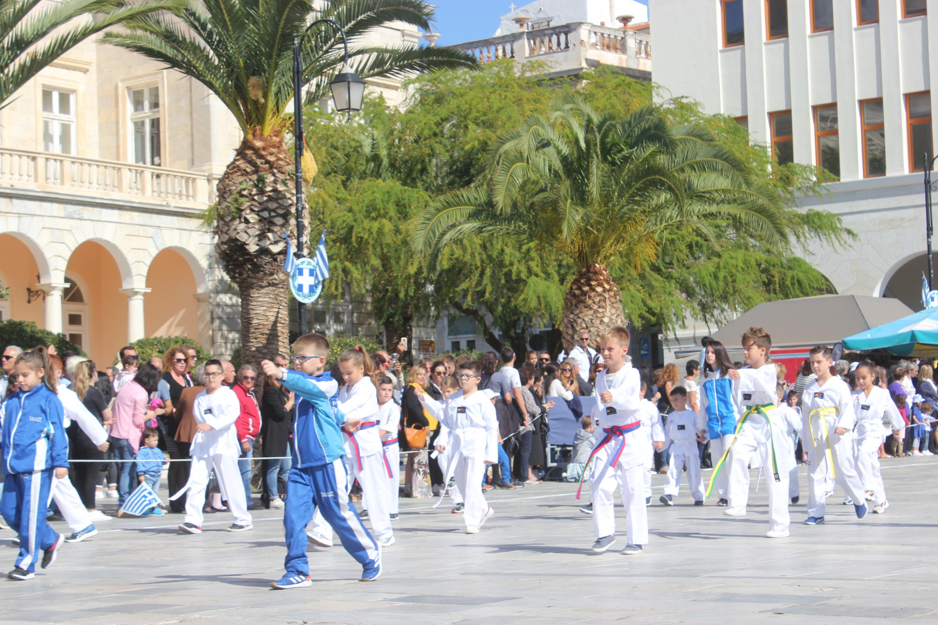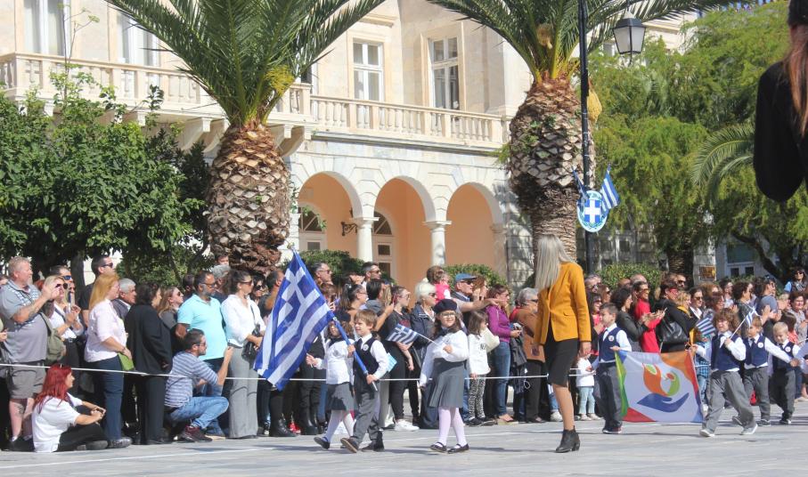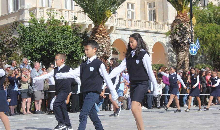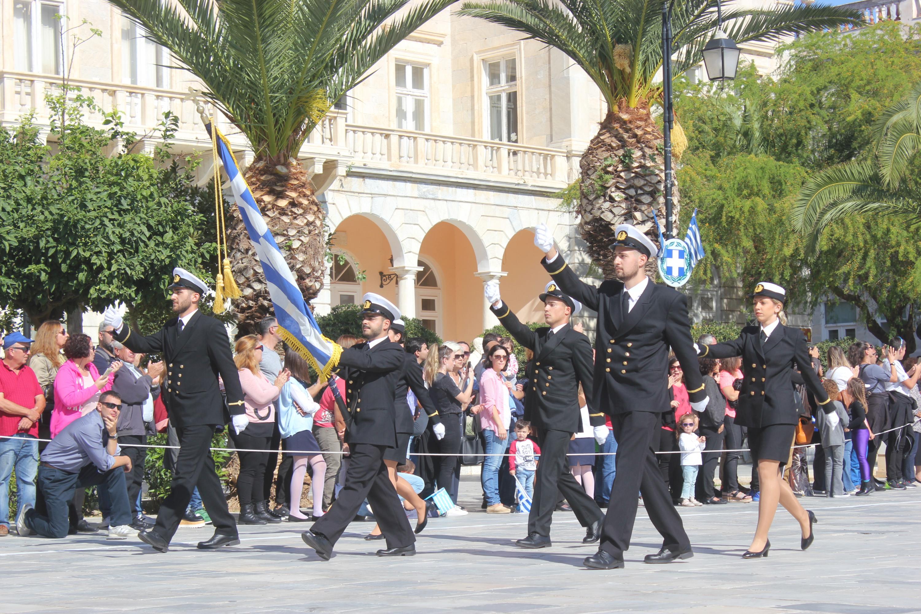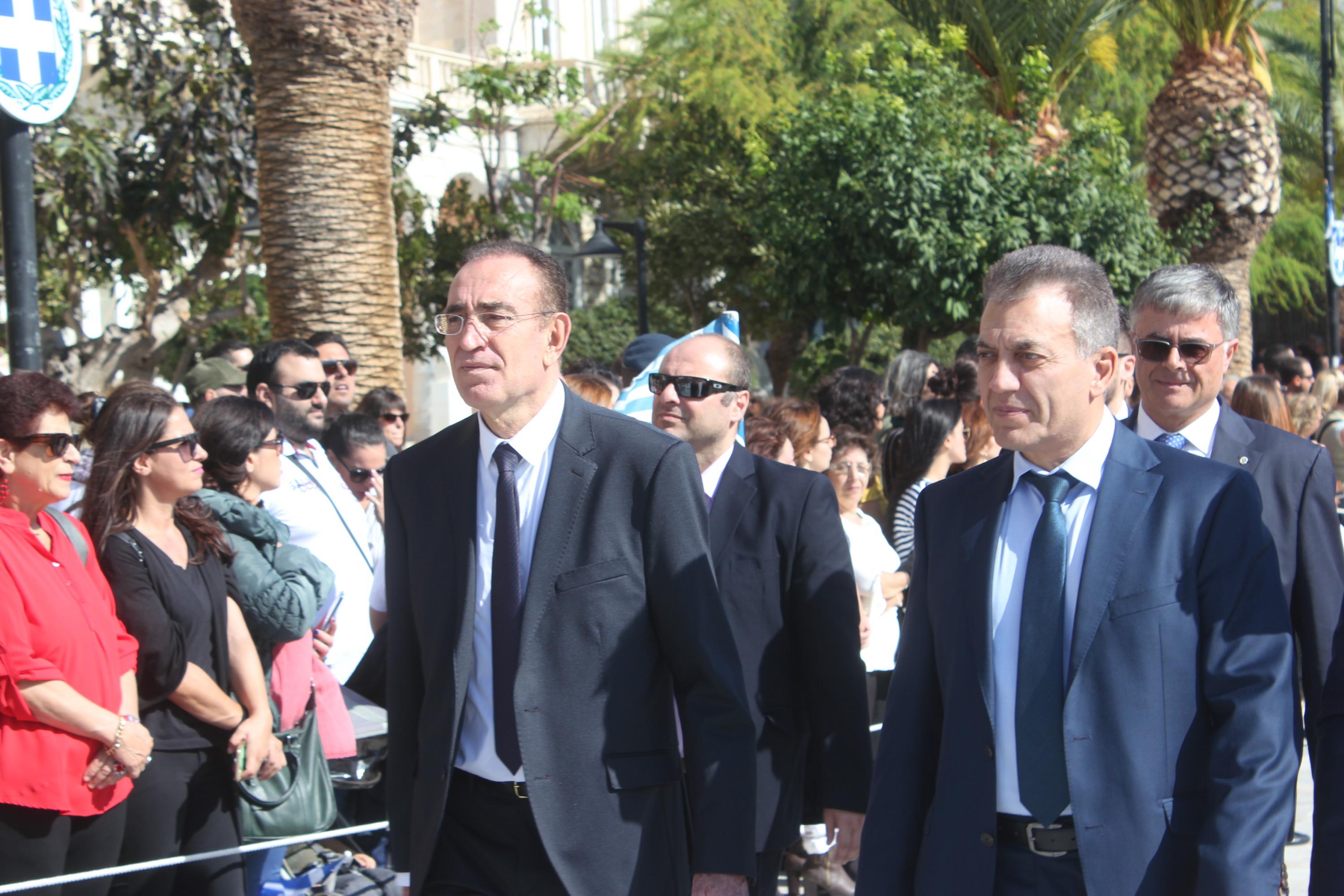 Οι εκδηλώσεις ολοκληρώθηκαν με την καθιερωμένη μαθητική παρέλαση στην πλατεία Μιαούλη. Επικεφαλής της παρέλασης ήταν και φέτος η Φιλαρμονική Δήμου Σύρου – Ερμούπολης, ενώ συμμετείχαν επίσης το Λύκειο Ελληνίδων Σύρου, ο Σύλλογος Μικρασιατών Ερμούπολης Σύρου, ο Σύλλογος Ποντίων και Βορειοελλαδιτών Σύρου «Ο ΕΥΞΕΙΝΟΣ ΠΟΝΤΟΣ», ο Ναυτικός Όμιλος Σύρου, ο Αθλητικός Σύλλογος Tae Kwon Do Ερμούπολης, το Σώμα Ελλήνων Προσκόπων, οι σπουδαστές της Ακαδημίας Εμπορικού Ναυτικού Σύρου και ένοπλο πεζοπόρο τμήμα του Τάγματος Εθνοφυλακής Ερμούπολης.