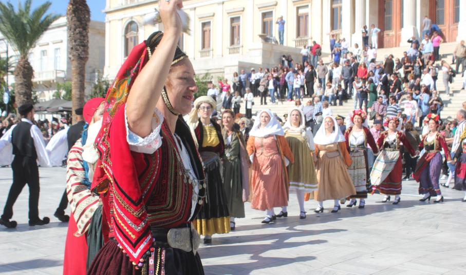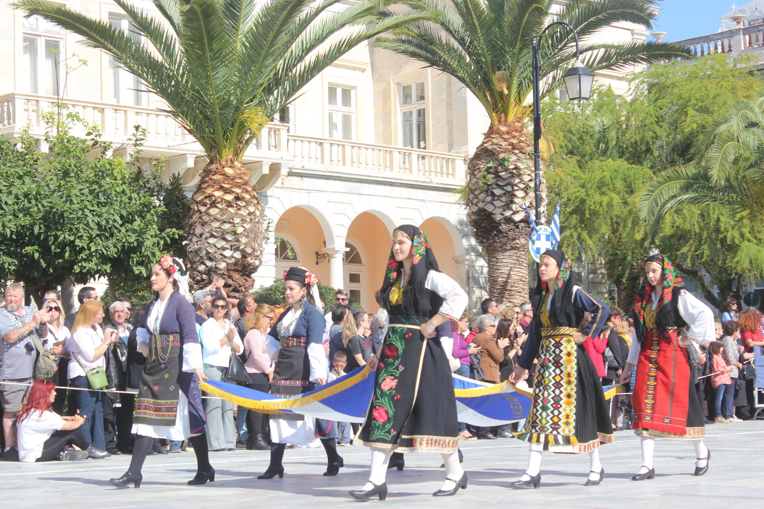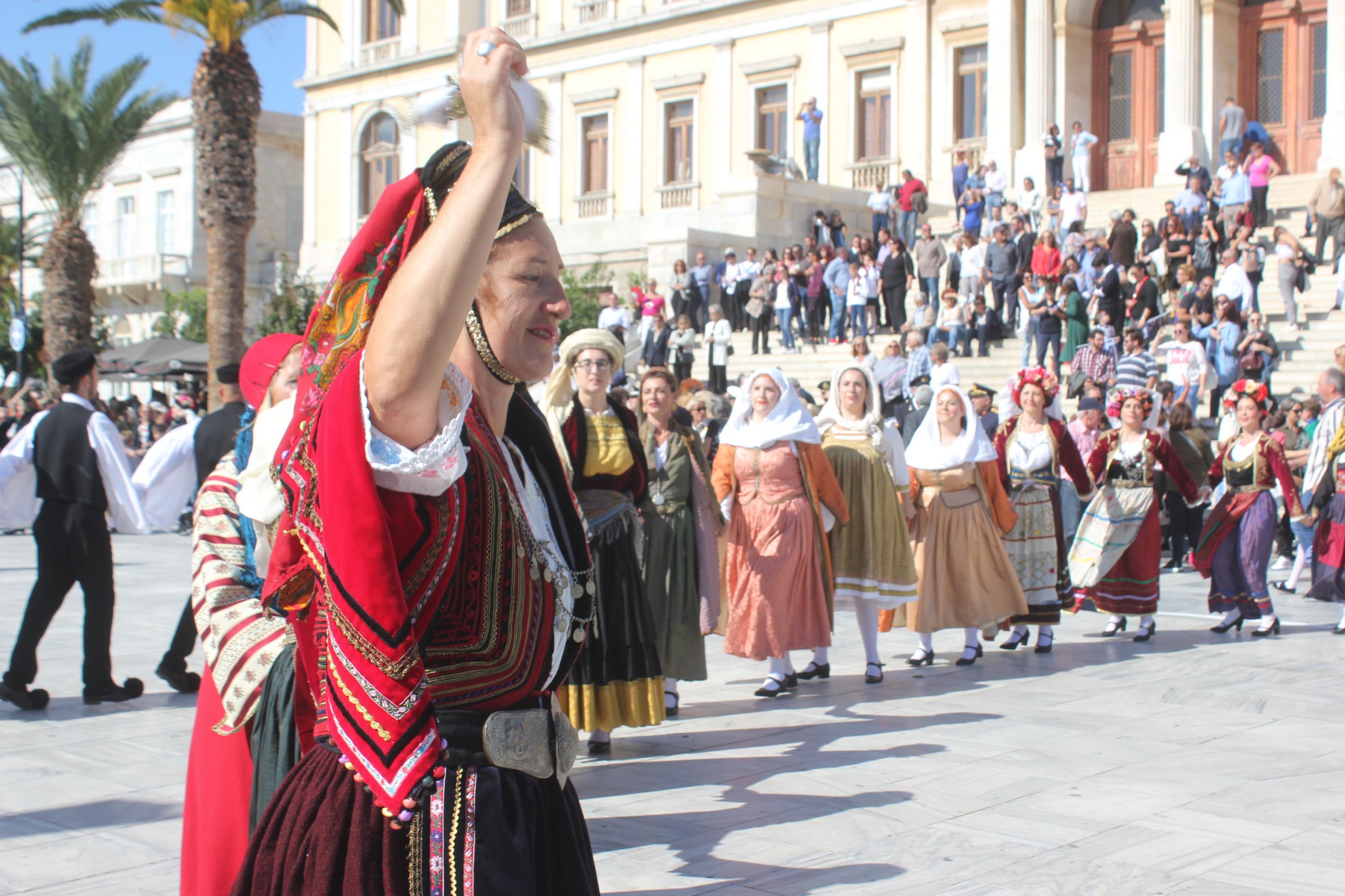 Μετά το πέρας της παρέλασης, οι επισκέπτες της πλατείας Μιαούλη είχαν την ευκαιρία να απολαύσουν παραδοσιακούς χορούς από τα τμήματα του Λυκείου Ελληνίδων Σύρου.