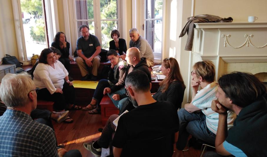 Από την πλευρά των εκπροσώπων της ΚοινΣΕπ Απάνω Μεριά, οι συμμετέχοντες ενημερώθηκαν, για τη δημιουργία του μικρής κλίμακας κέντρου ανακύκλωσης πλαστικού στη Σύρο, που λειτουργεί στο χώρο της Βαρδακείου Σχολής, με τη συναρμολόγηση των open-source μηχανημάτων του Precious Plastic καθώς και για το συνολικό εγχείρημα της δημιουργίας γεωπάρκου, γεωλογικού μουσείου και δικτύου γεωλογικών διαδρομών στη Σύρο και τις Κυκλάδες.